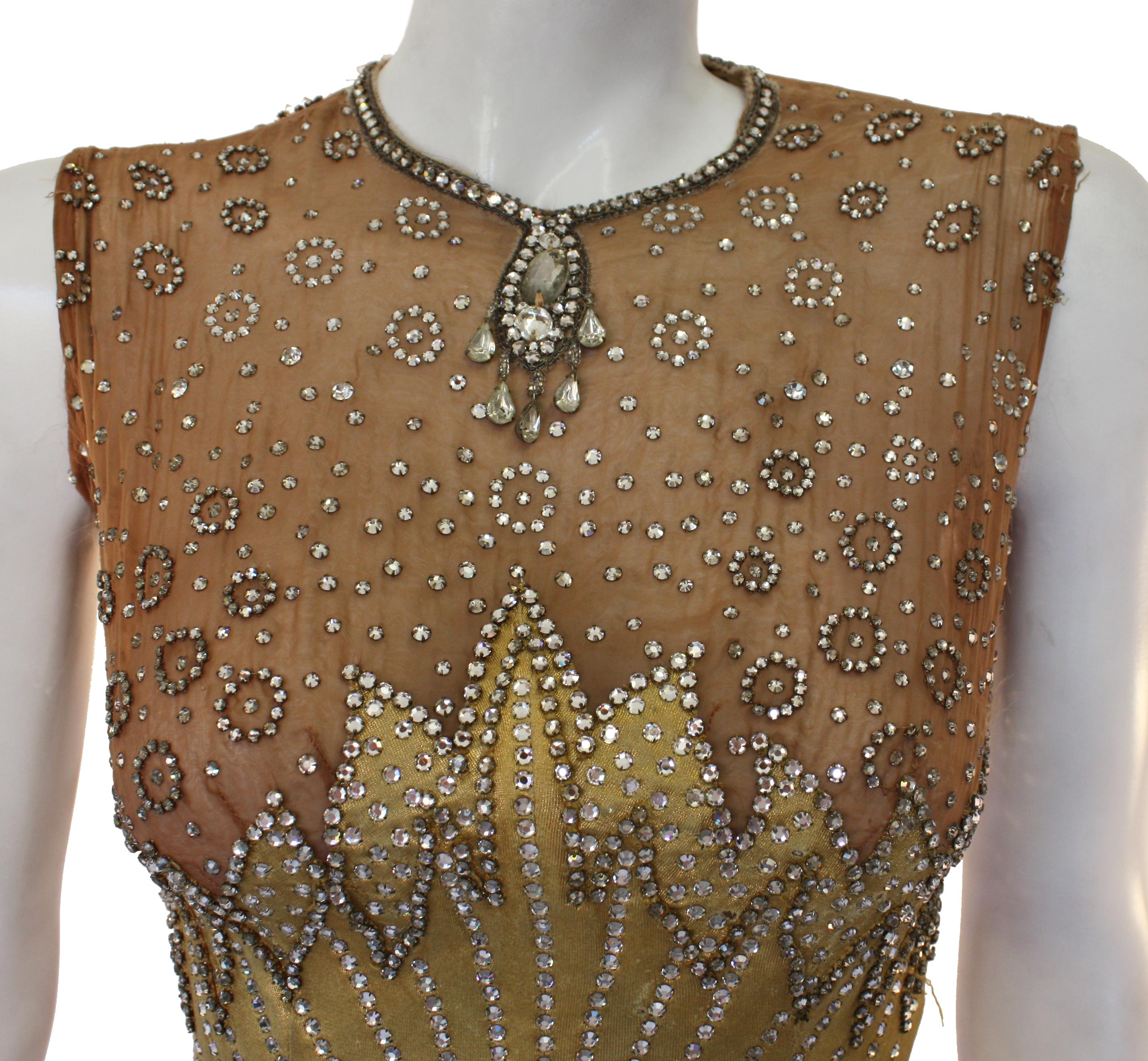 BRITNEY SPEARS (2008) – This gold rhinestone encrusted bodysuit was worn by legendary entertainer Britney Spears in the video for the title track from her 2008 comeback album “Circus”. Britney appears wearing the garment with the back unzipped in several scenes of the video during the sequence where she dances in front of a falling shower of pyrotechnic sparks. She also appears wearing this garment on the cover of the single for the song, and appeared wearing it again in a photograph from the cover article of the December 2008 issue of Rolling Stone Magazine. This signature piece from the video, single, and title track of Britney’s phenomenal comeback album is an impressive artifact of musical history that would make a wonderful addition to any collection of musical memorabilia. The vintage garment has been used previously by assorted celebrities in numerous productions prior to Ms. Spears and is in good condition with some minor evidence of age as seen in the video. Accompanied by a letter of authenticity from the costume house. “Circus” debuted at #1 in U.S. record sales the first week of its release in 2008.
