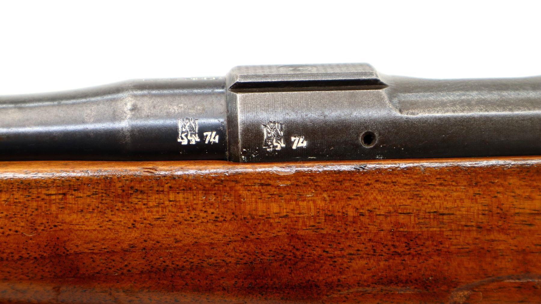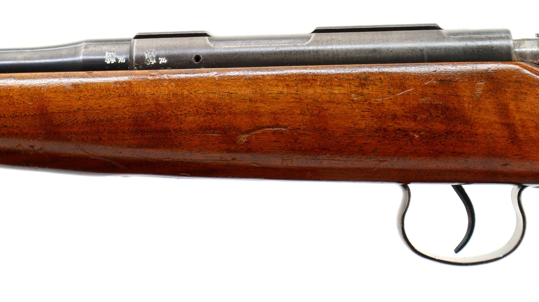 Wear: Metal finish shows some light rust speckles, scratches, handling marks and wear. Stock shows some marks, scratches and wear.