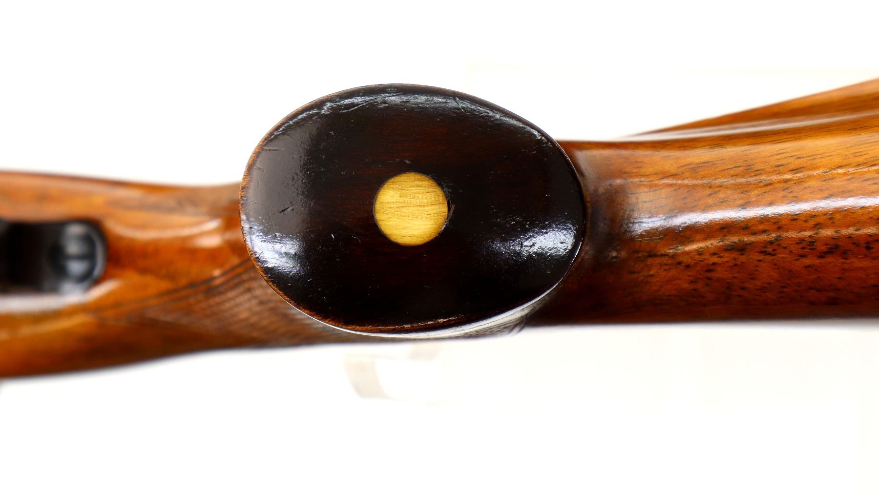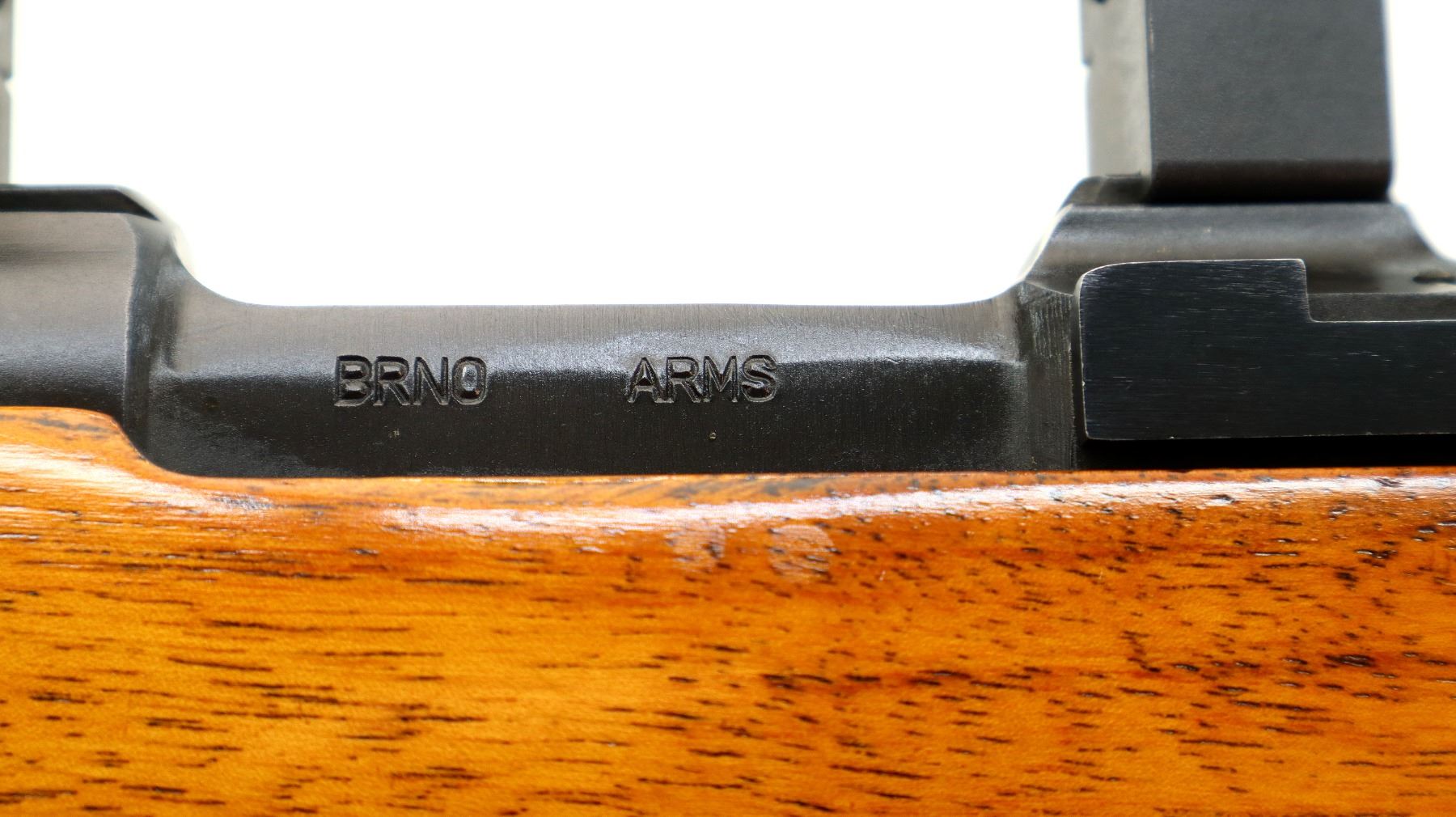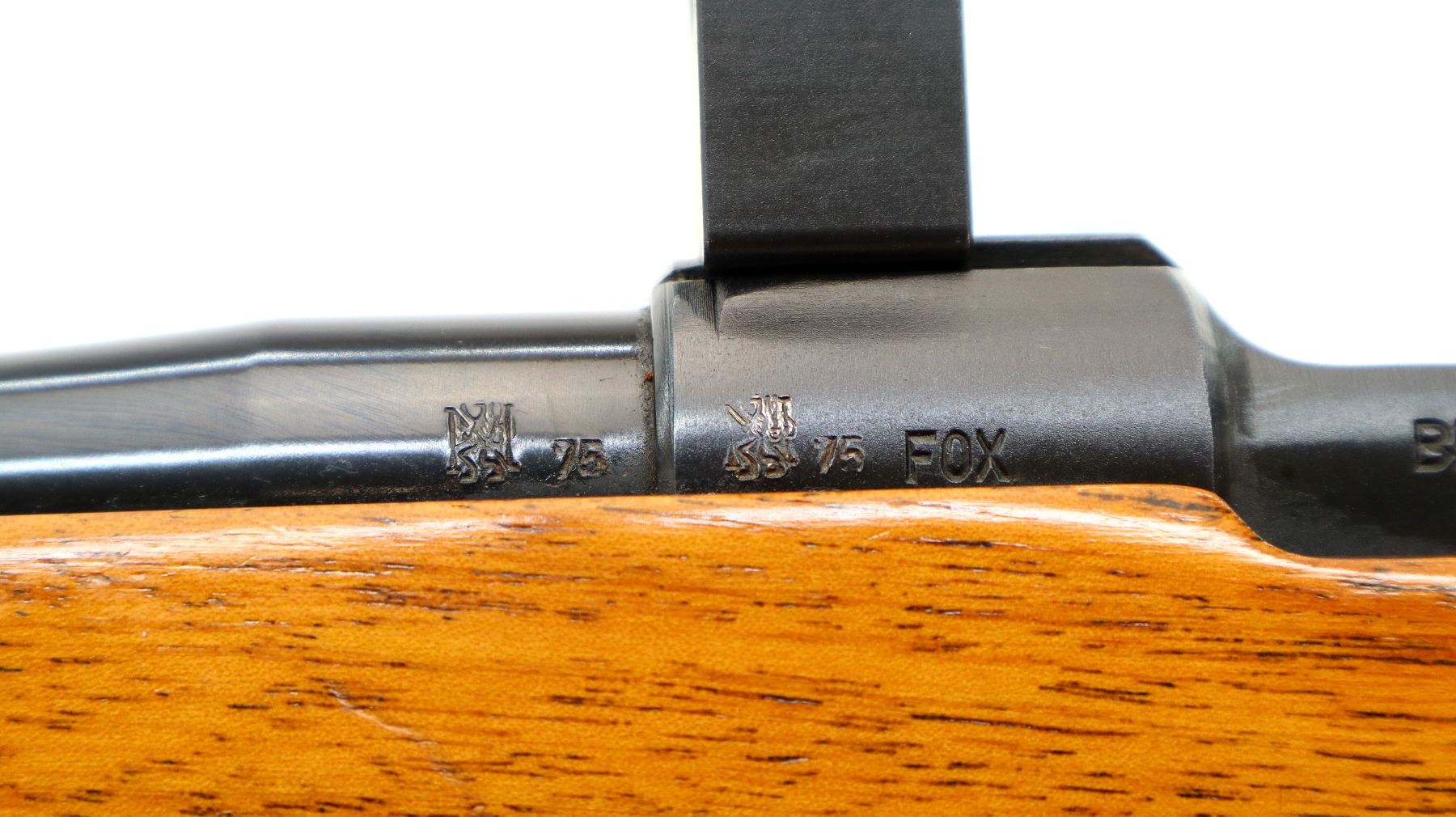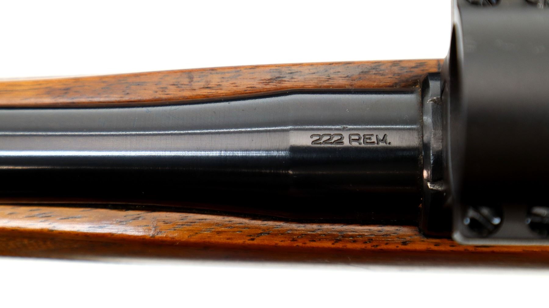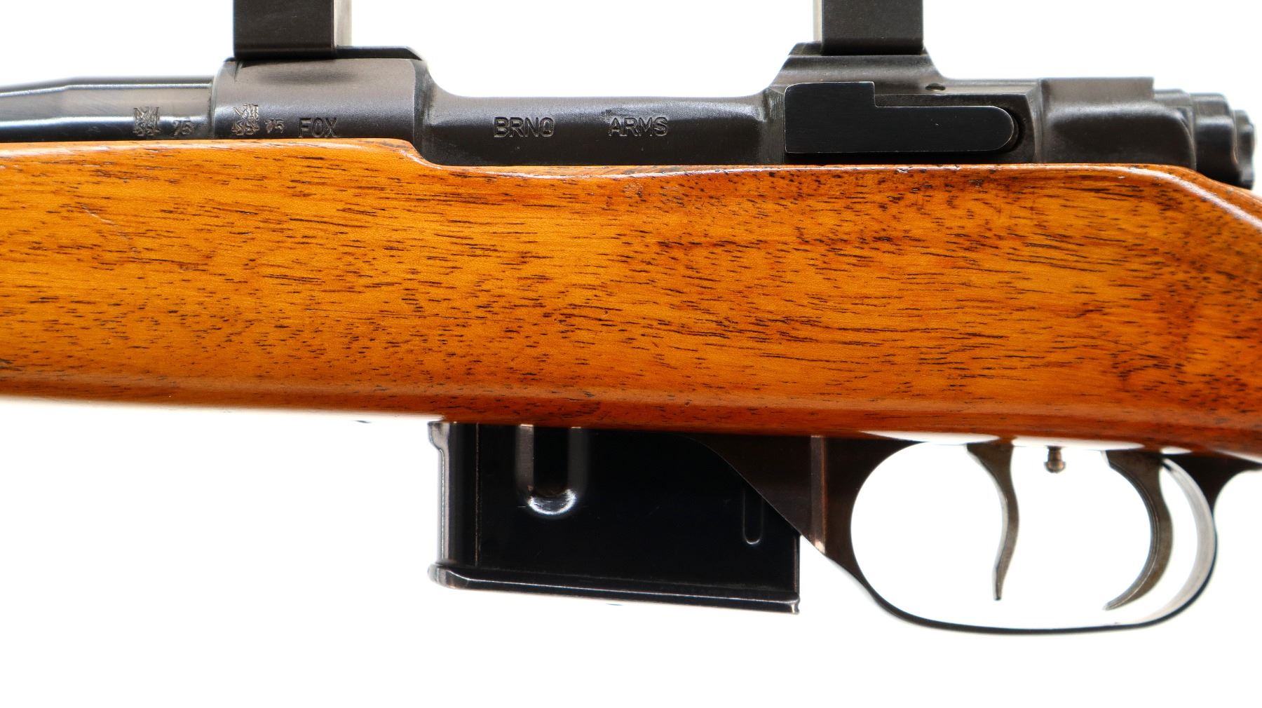 Main Description: Dated 1975. Blade front sight with ramp, missing rear sight dovetail present, polish blued finish, receiver has integral scope bases, 1" CZ 527 rings installed, smooth bolt knob, double set triggers. One piece wood stock, wood forend and pistol grip caps, checkered forearm, pistol grip and black polymer butt plate. Cheek rest, sling swivels
