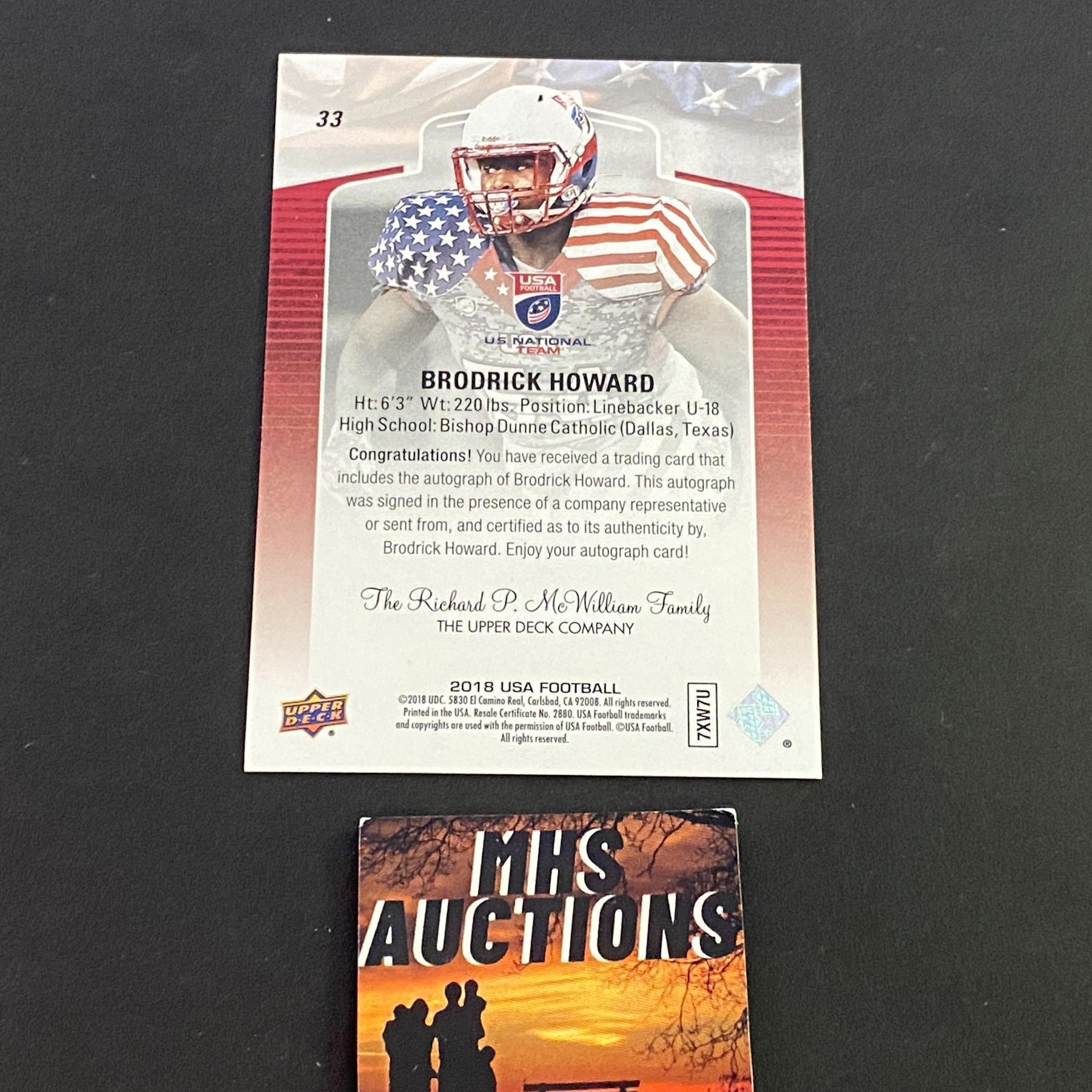 BRODRICK HOWARD 2018 USA FOOTBALL AUTOGRAPH CARD (ref2378)