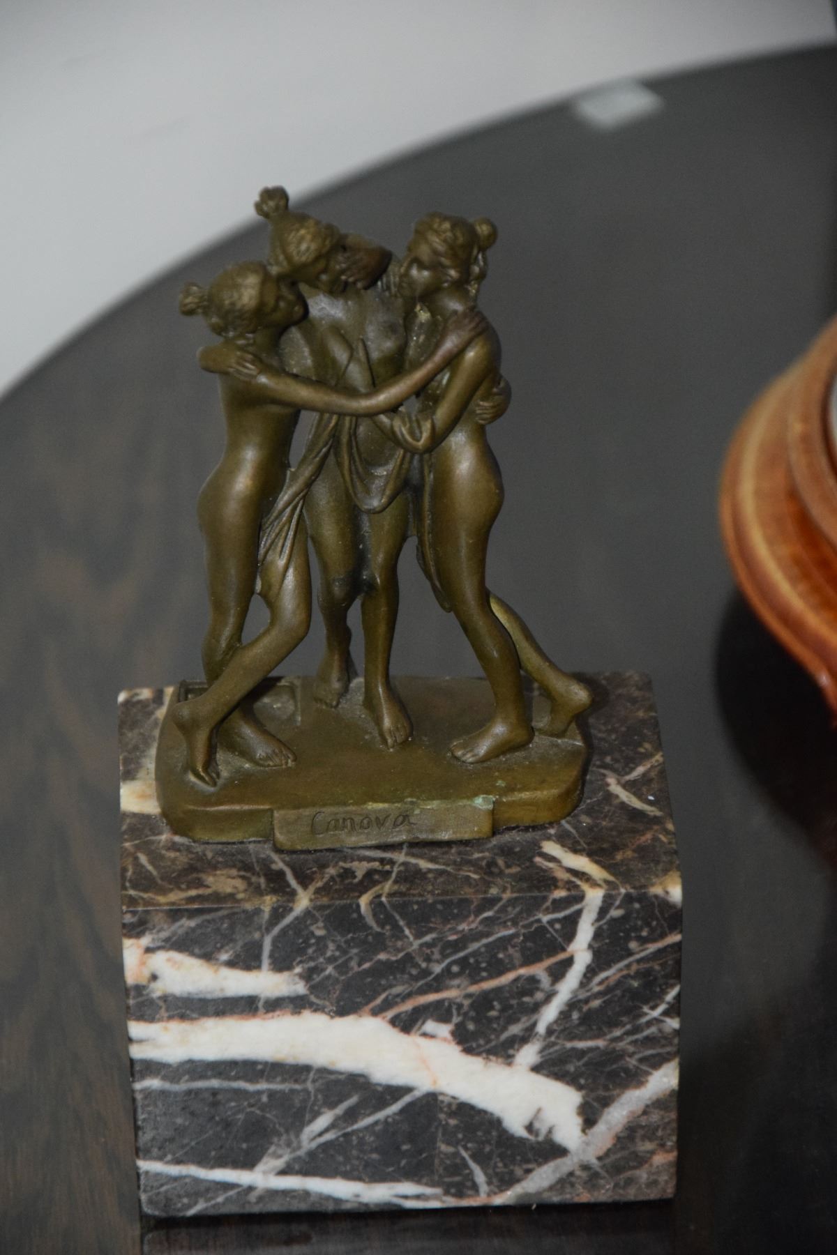 BRONZE FEMALE NUDE FIGURES ON MARBLE BASE