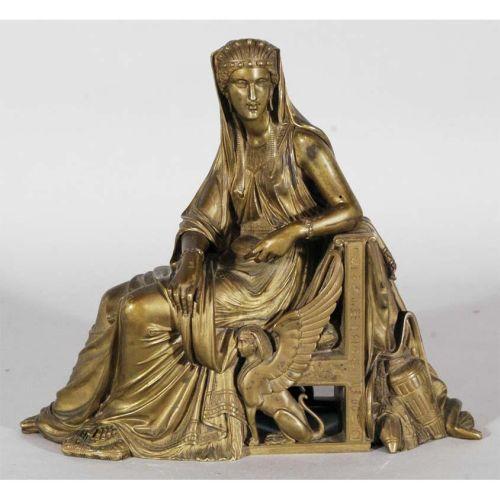 1 BRONZE FIGURE OF CLEOPATRA on sphynxth throne 11" high unsigned CONDITION REPORT: lacking piece held in her left hand. PACKING AND SHIPPING (excluding insurance) by Fairfield Auction to points within the Continental U.S.A. and Canada (all other international must be handled by 3rd party shipper) $40.