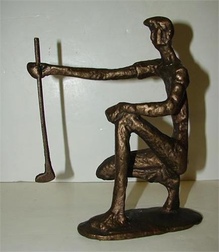 BRONZE GOLFER SCULPTURE. Depicts a squatting golfer lining up a putt. No mark. 6.25” H