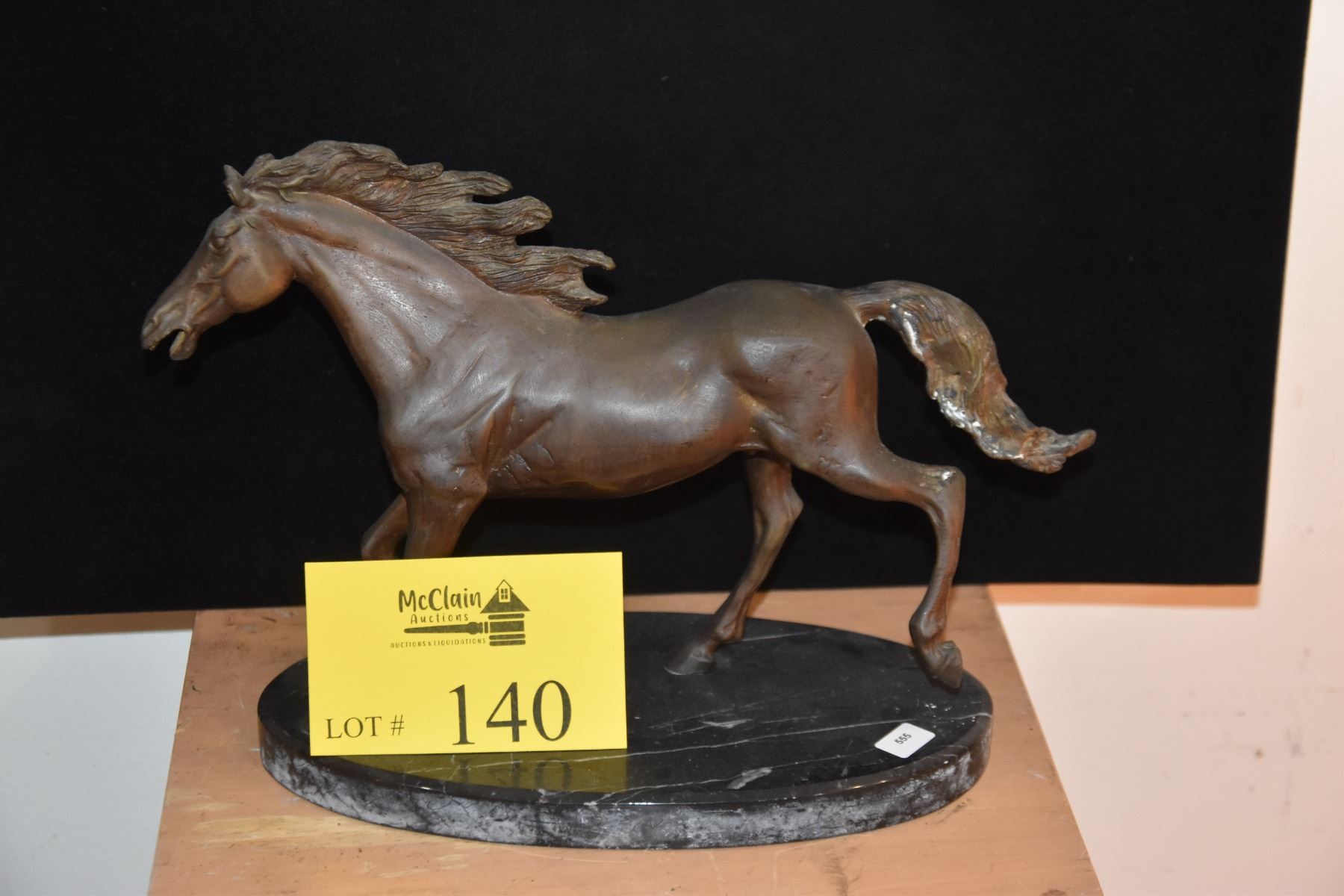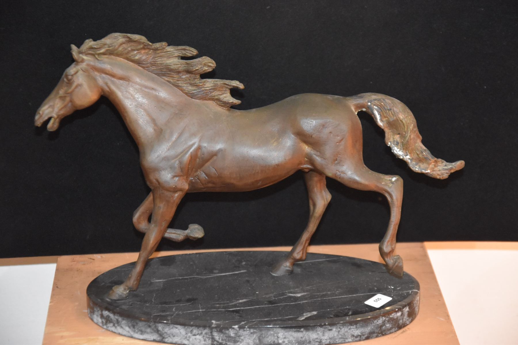 BRONZE HORSE SCULPTURE ON GREEN MARBLE BASE