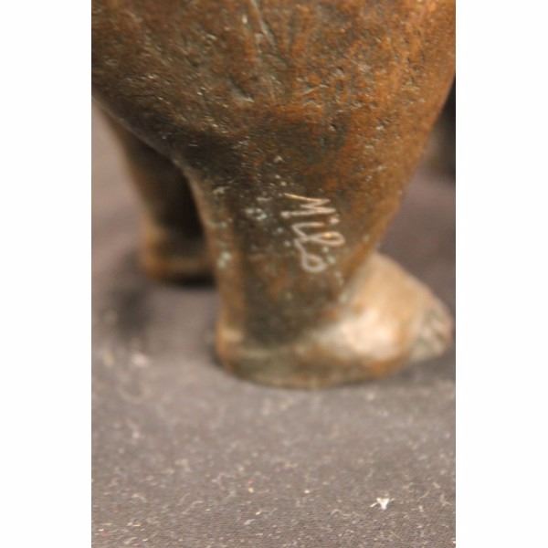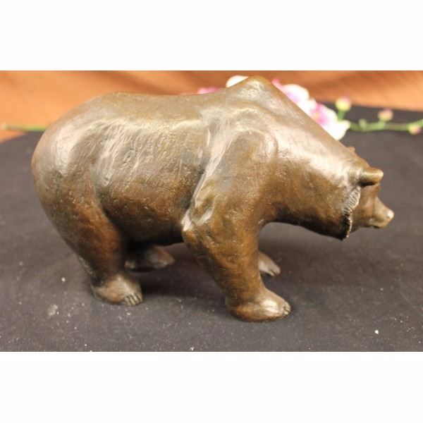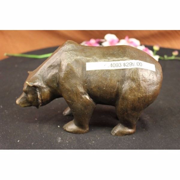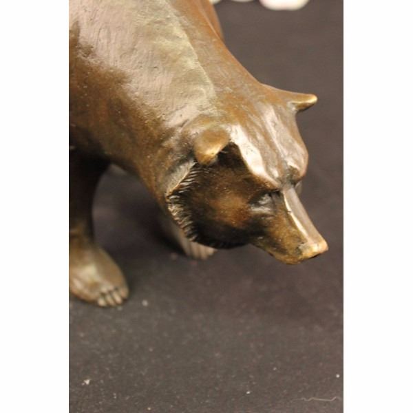Are you an animal lover? If so, this is a great piece for you! It features a young bear standing on top of a marble leaning its weight into abase proudly displaying his great figure. To this day, bears play a prominent role in the arts, mythology, and other cultural aspects of various human societies. The bear was thought to possess diplomacy equal to its great strength and it is the emblem of ferocity in the protection of kindred. A bear is also a symbol of healing and personal health, strength and bravery. Bears paws are also often found as crests or symbols on shields. It has been crafted with authentic detail by the artisan, Milo. Get one for the animal lover in your life! Condition: This sculpture is in very good condition. Bronze Dimensions with Marble Base:Height 7 1/2" x Width 9" Marble Dimensions: 9" X 5". Height without base: 6 1/2" Weight : 10 LBS Inventory : 1738K14071