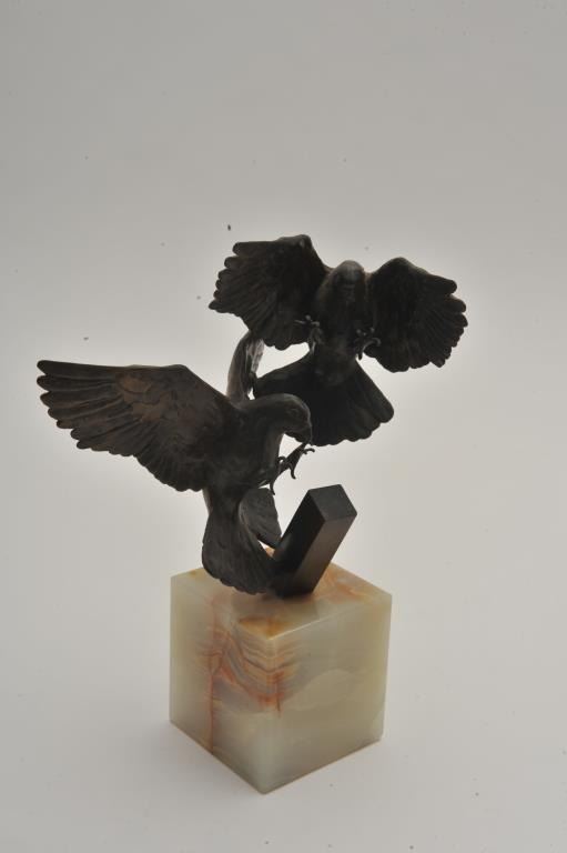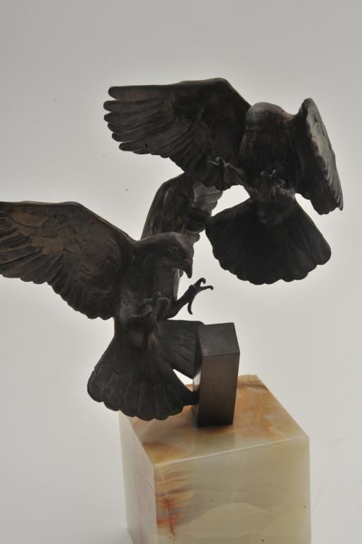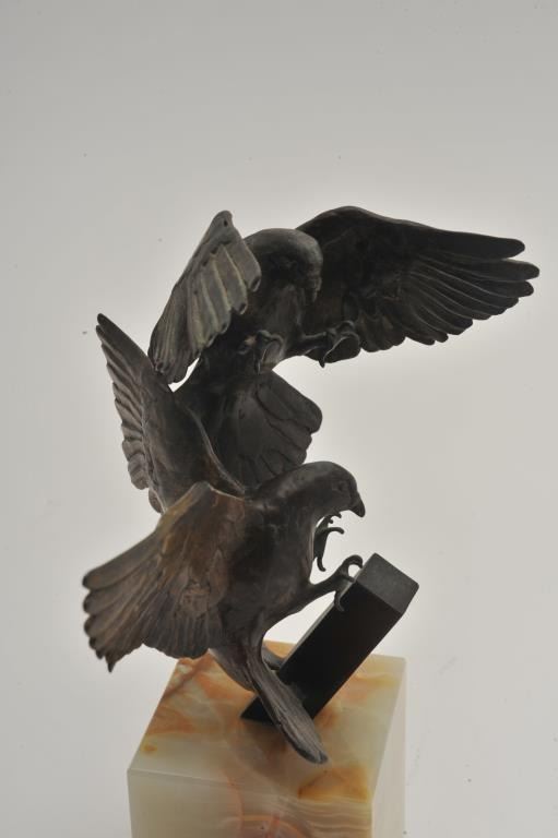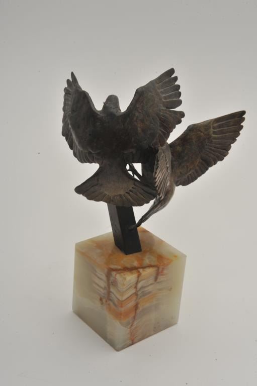 Original bronze of fighting hawks signed GW Lunden #23 of 33 only. 9 ½ height including 3” on base. Est:$250-500