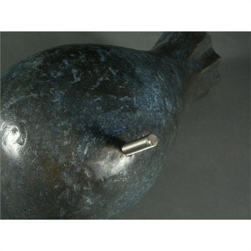 BRONZE SCULPTURE, Mark Calderon (1955-), WA. ''SACK''. Patinated blue-toned bronze sculpture. Mounting bolt attached. More info. at the front desk. 11''L x 6''H.