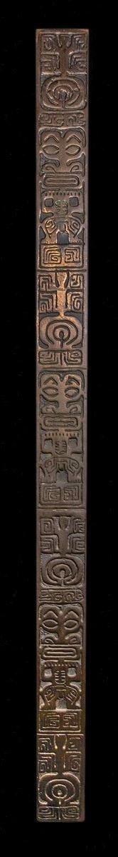 (1960s) The Big Kahuna of door pulls, this was initially a custom created item for a restaurant in the 1960s (OA initially offered a hardwood version). For higher end venues, OA would use a special foundry to create high quality bronze versions of some of their offerings. Here is the largest, a 36" tall version. Most probably for a large entrance door. The details are exquisite and simply mounted on a wall, it commands admiration. OA has reproduced these by special request in a few instances, however, as Bob recalls, not very often.36"x2.5"VG+