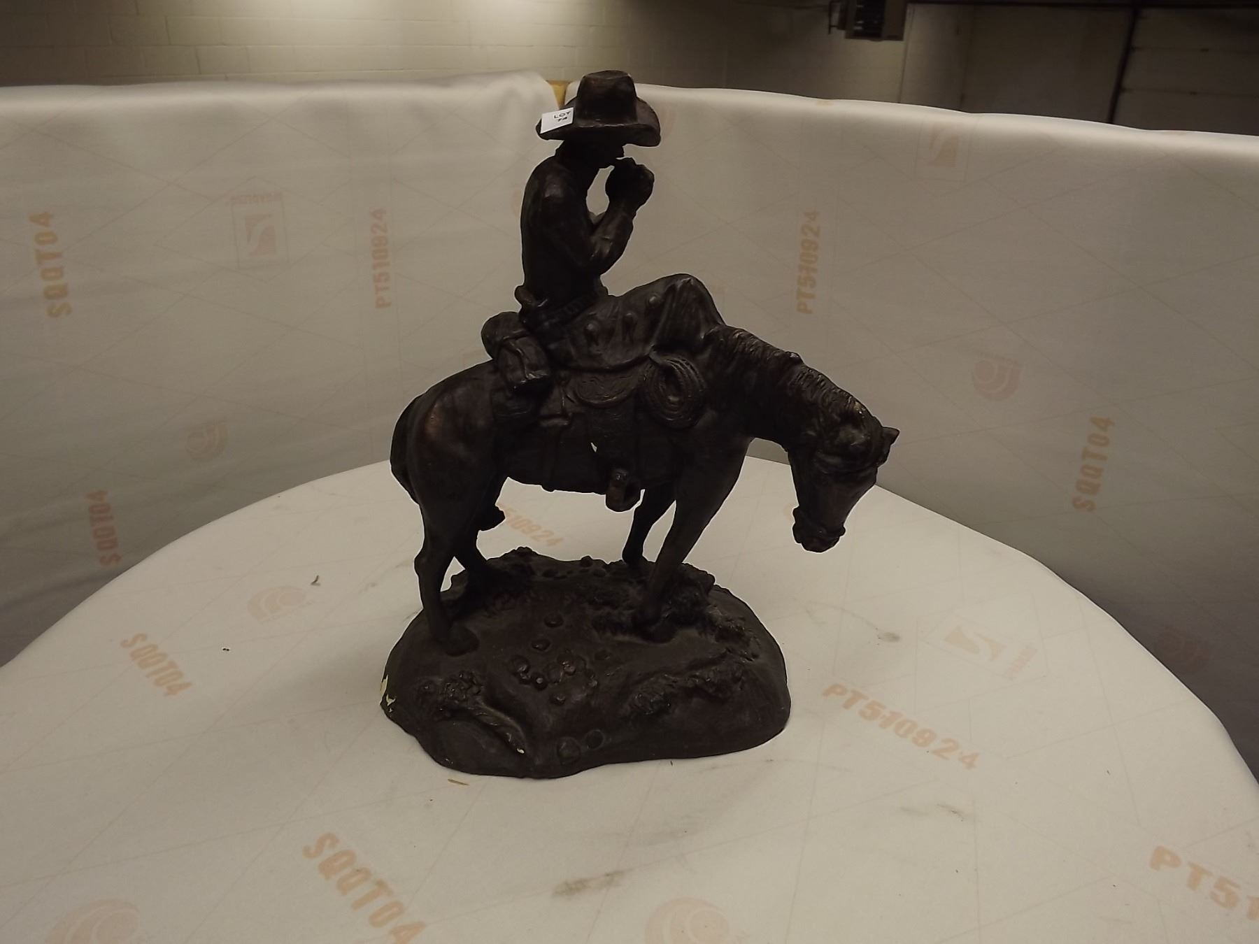BRONZED COWBOY ON HORSE ESTATE STATUE/ ORNAMENT