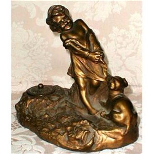 <tr><td>Title:BRONZED Figural INKWELL Child and Dog ~ANTIQUE~</td></tr>