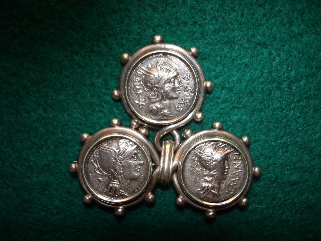 SILVER BROOCH WITH 3 ANCIENT COINS