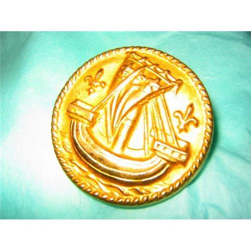 SHIP AT SEA, GREAT STYLIZED PIN BY ATHUS BERTRAND OF PARIS. STYLED AFTER THE DESIGNS OF THE GOTHIC PERIOD. GOLD PLATED IN WONDERFUL CONDITION, THIS PIN HAS BEEN TAKEN CARE OF WITH KID GLOVES, THIS PIECE IS A SHOW STOPPER.