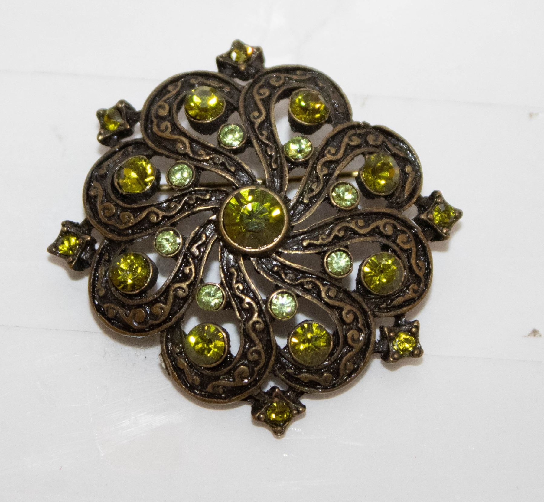 BROOCH WITH BRIGHT GREEN STONES
