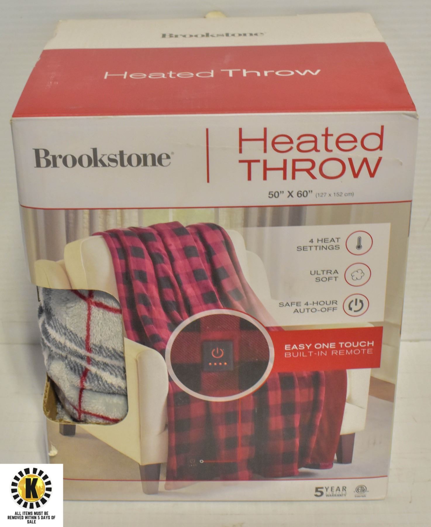 BROOKSTONE HEATED THROW 50 IN X 60 IN