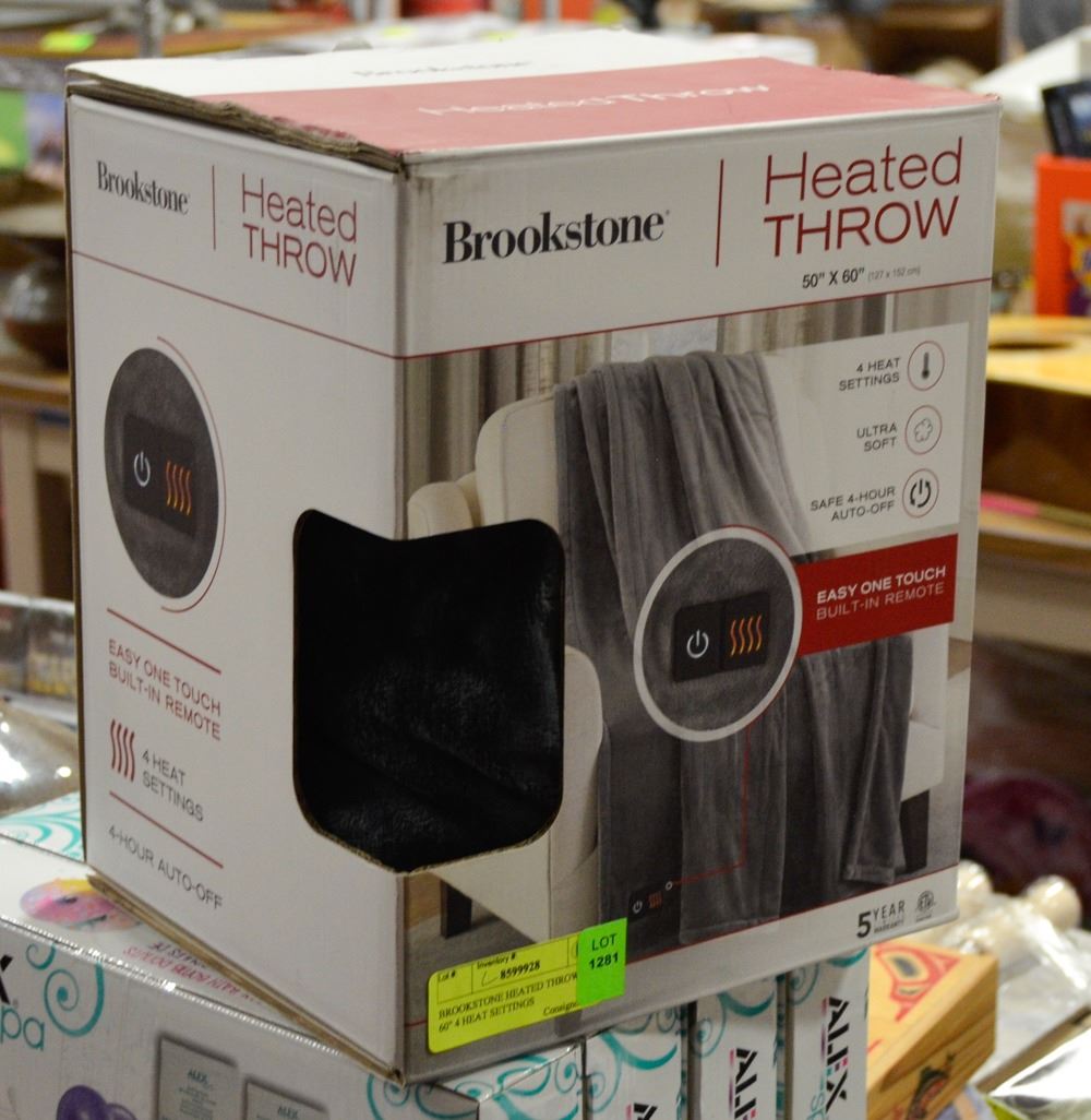 BROOKSTONE HEATED THROW 50" X 60" 4 HEAT SETTINGS