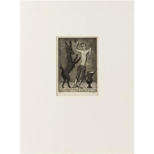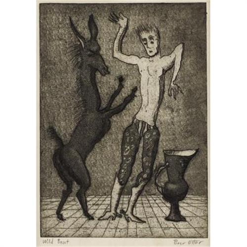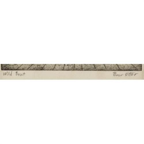 <B>BROR UTTER (1913-1993)<BR></B></I><I>Wild Beast<BR></B></I>Etching and aquatint on paper<BR>7 x 5 inches (17.8 x 12.7 cm)<BR>Signed lower right<BR>Titled lower left<BR><BR> A rare and desirable Bror Utter print from the prime period of the Fort Worth Circle.<BR><BR><B>Condition Report:</B> Excellent condition. Unframed.<BR><BR><b>Shipping:</b> Requires 3rd Party Shipping (<a target="_blank" href="http://www.heritageauctions.com/common/shipping.php">view shipping information</a>)