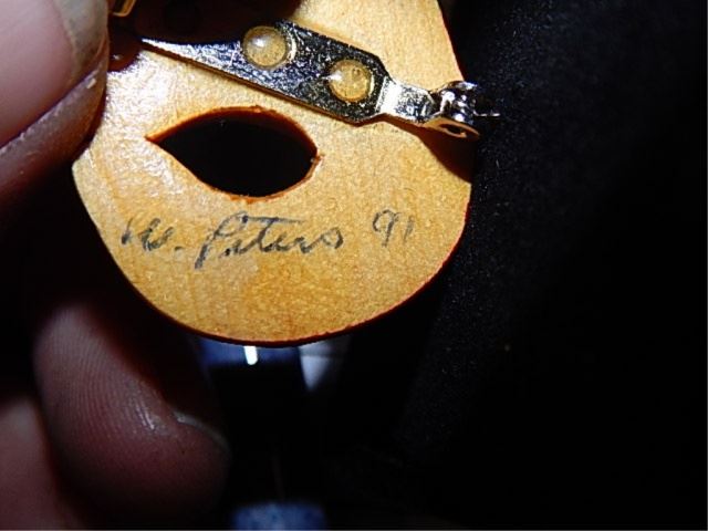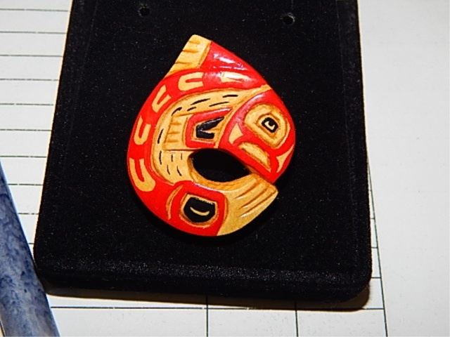 BROTCH - UNIQUE HAND CRAFTED NATIVE CEDAR CARVED AND PAINTED - SIGNED W. PETERS 1991