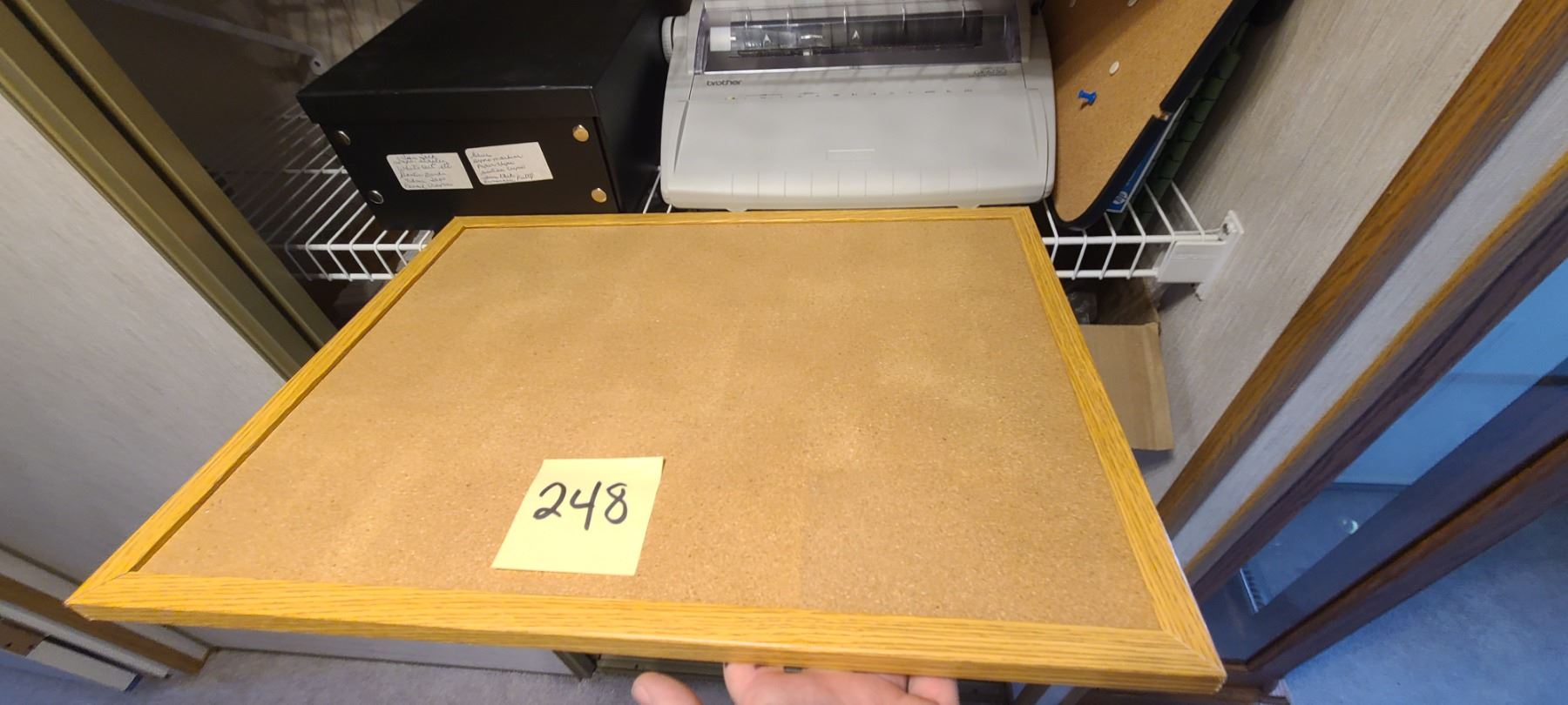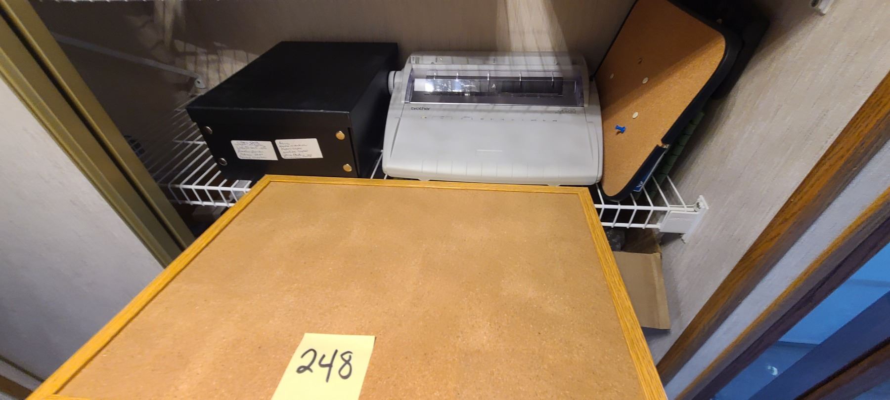 BROTHER ELECTRIC TYPEWRITER, CORK BOARD, OFFICE SUPPLIES; DYNO ROTARY LABELLER