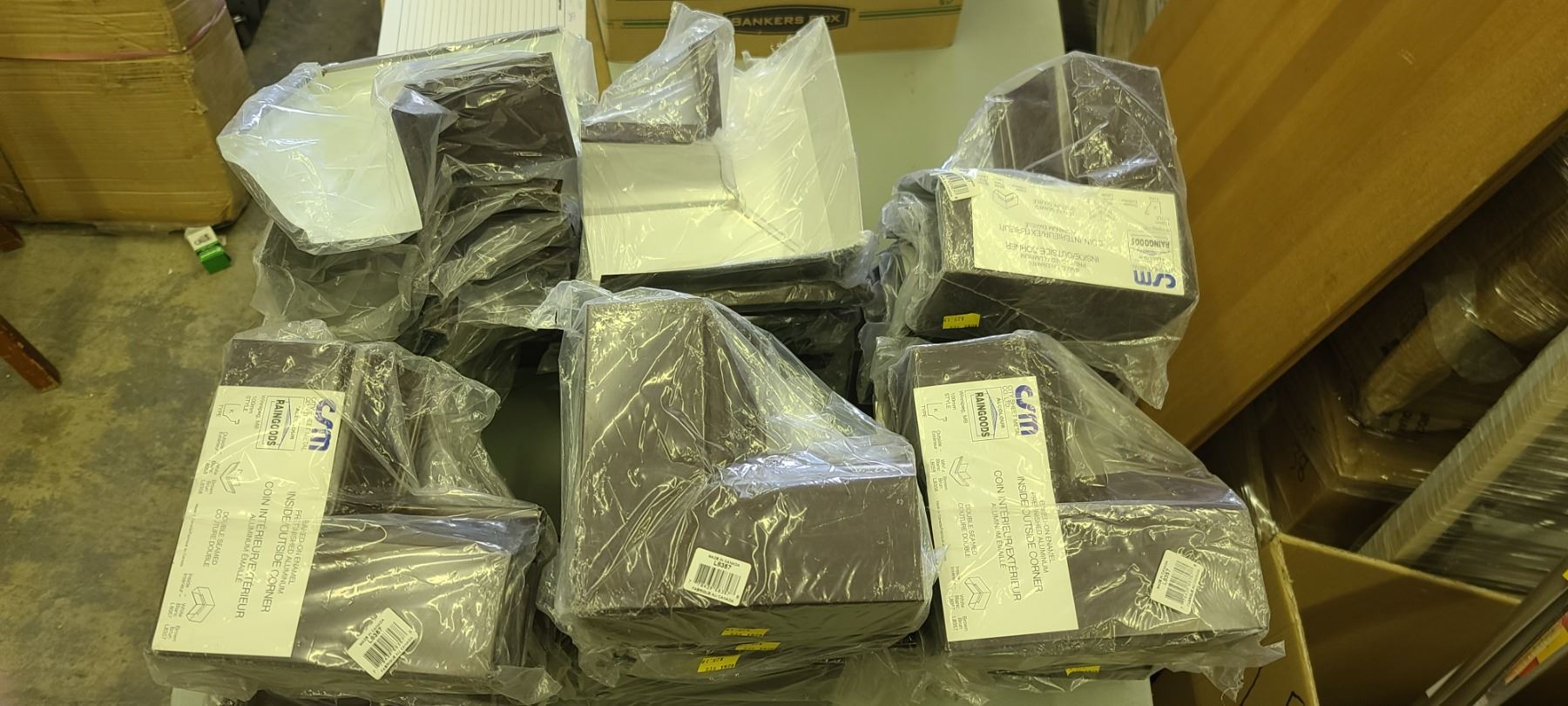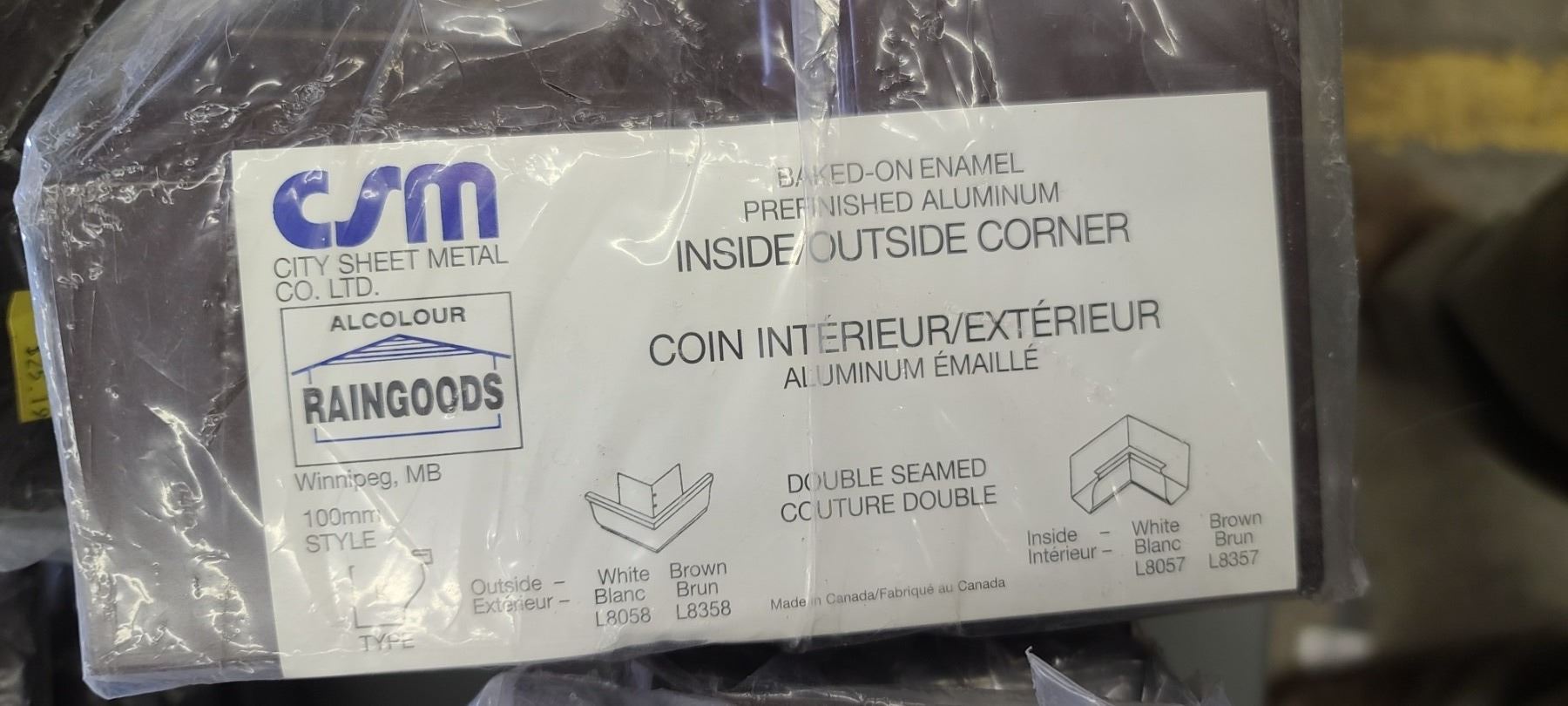 BROWN 4" INSIDE/OUTSIDE EVETHROUGH CORNERS QTY 39 RT VALUE $1,000