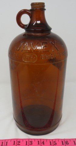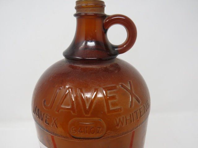 BROWN GLASS JAVEX JUG 64 OZ.