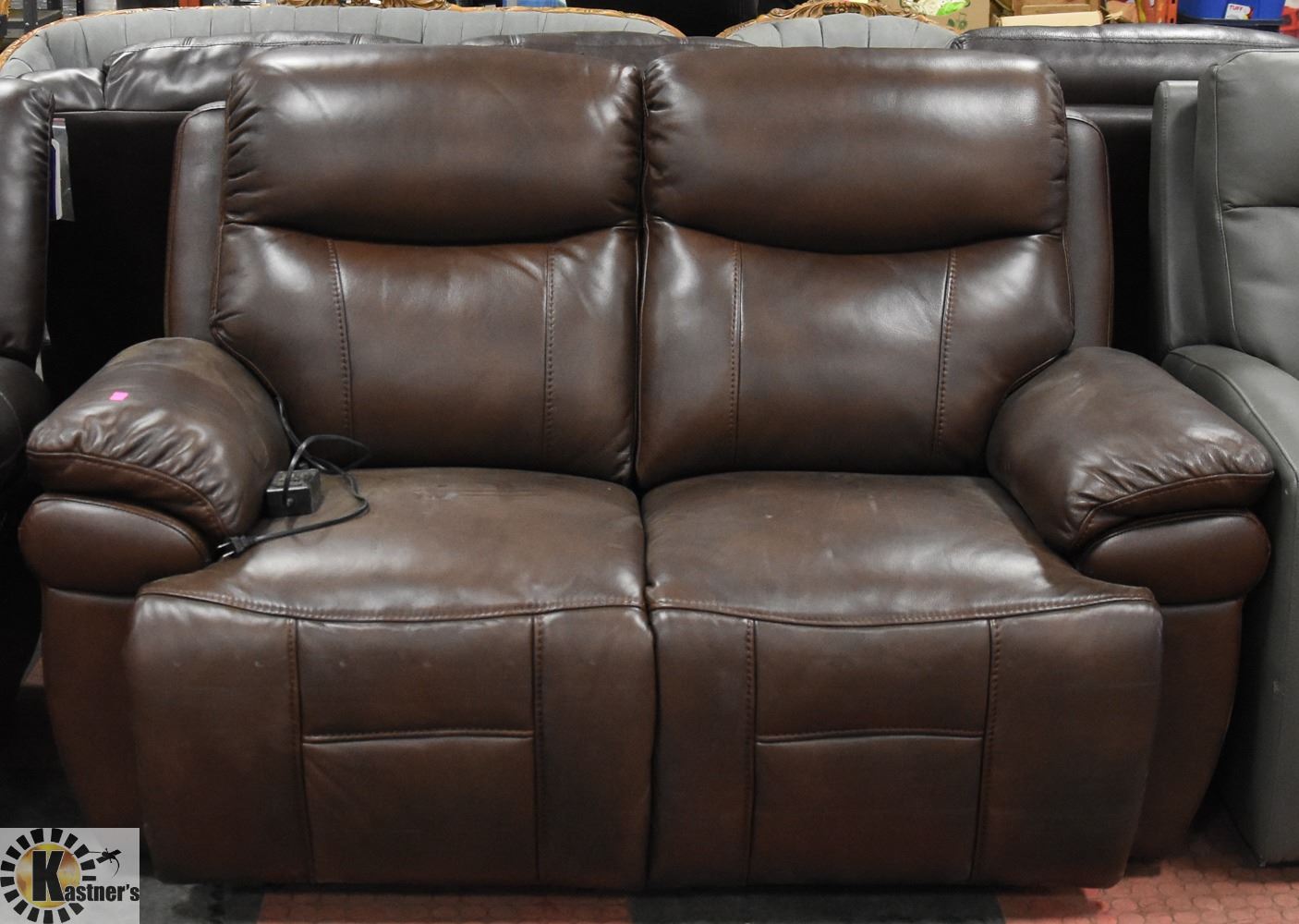 BROWN LEATHER ELECTRIC RECLINING LOVESEAT