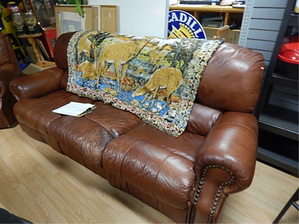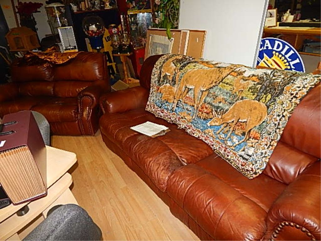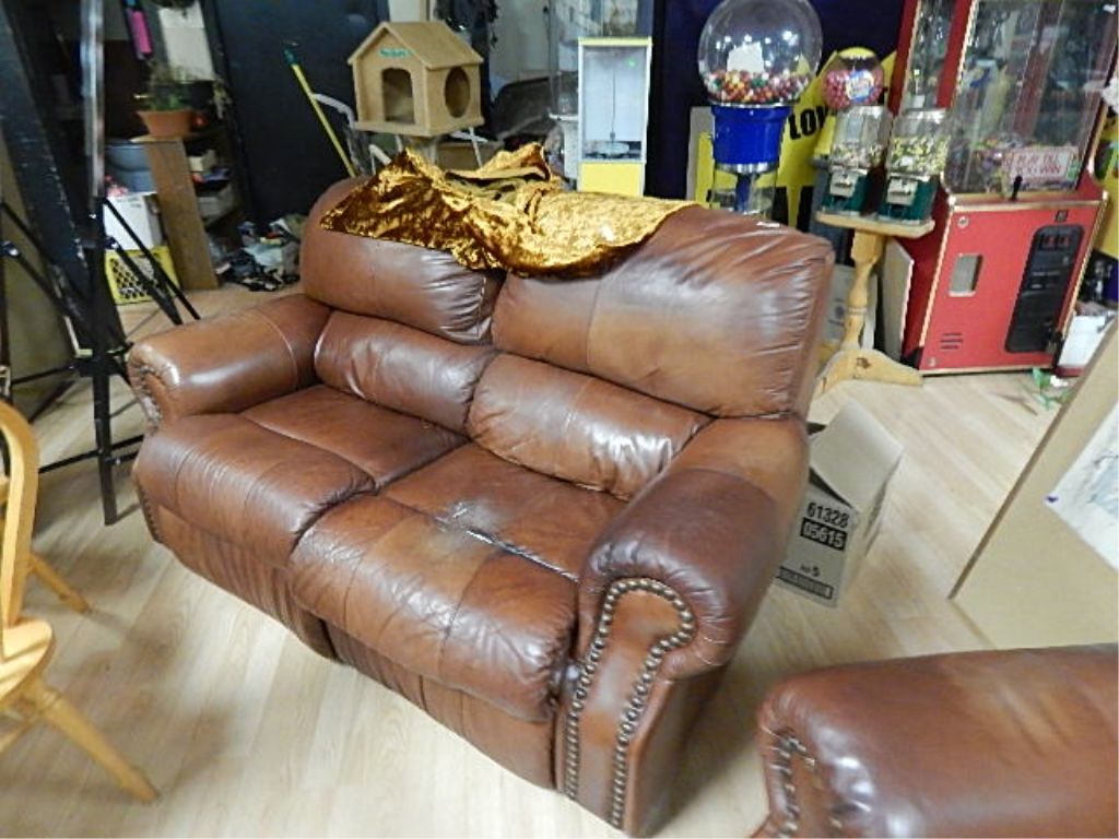 BROWN RECLINING CHESTERFIELD AND LOVE SEAT (as-is)