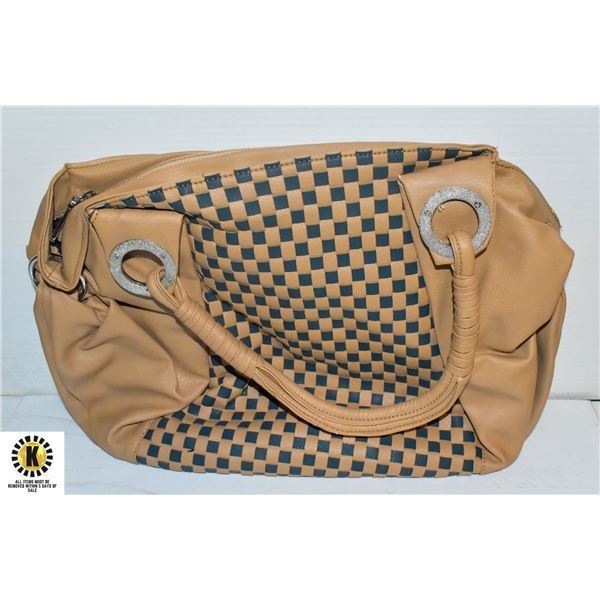NEW BROWN WITH BLACK CHECKERED LEATHER SHAGWEAR OVER THE SHOULDER BAG. CHECKERED ON ONE SIDE