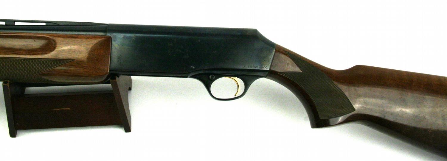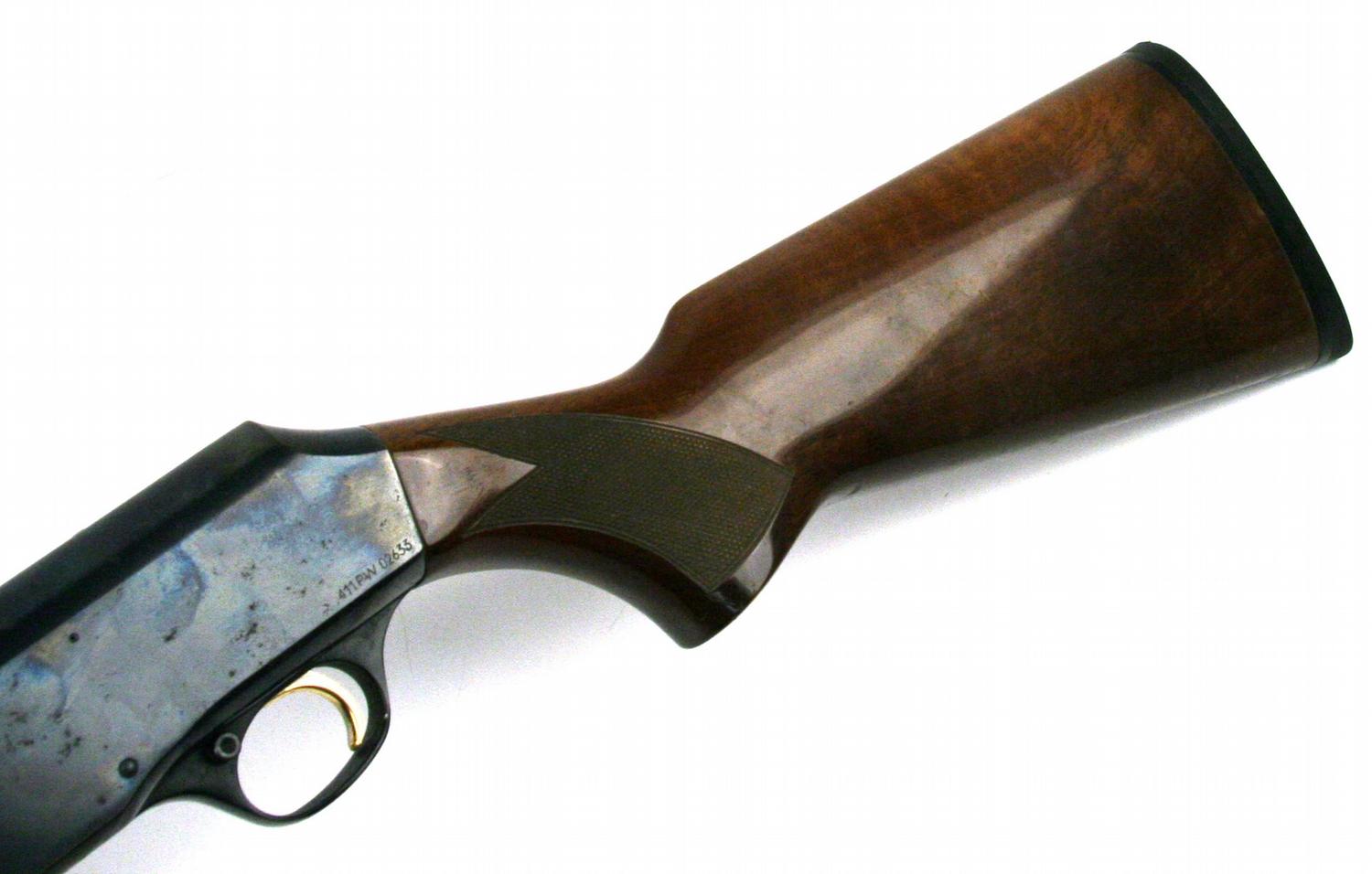 Browning B-80 semi automatic 12 gauge shotgun. 29 inch barrel, chambered for 2 3/4 inch shells. Bluing is about 70%, with some spotting of surface rust. Bore is bright and clean, and stock is very good, with minor field and handling wear. Overall very good condition. SN: 411PW02633