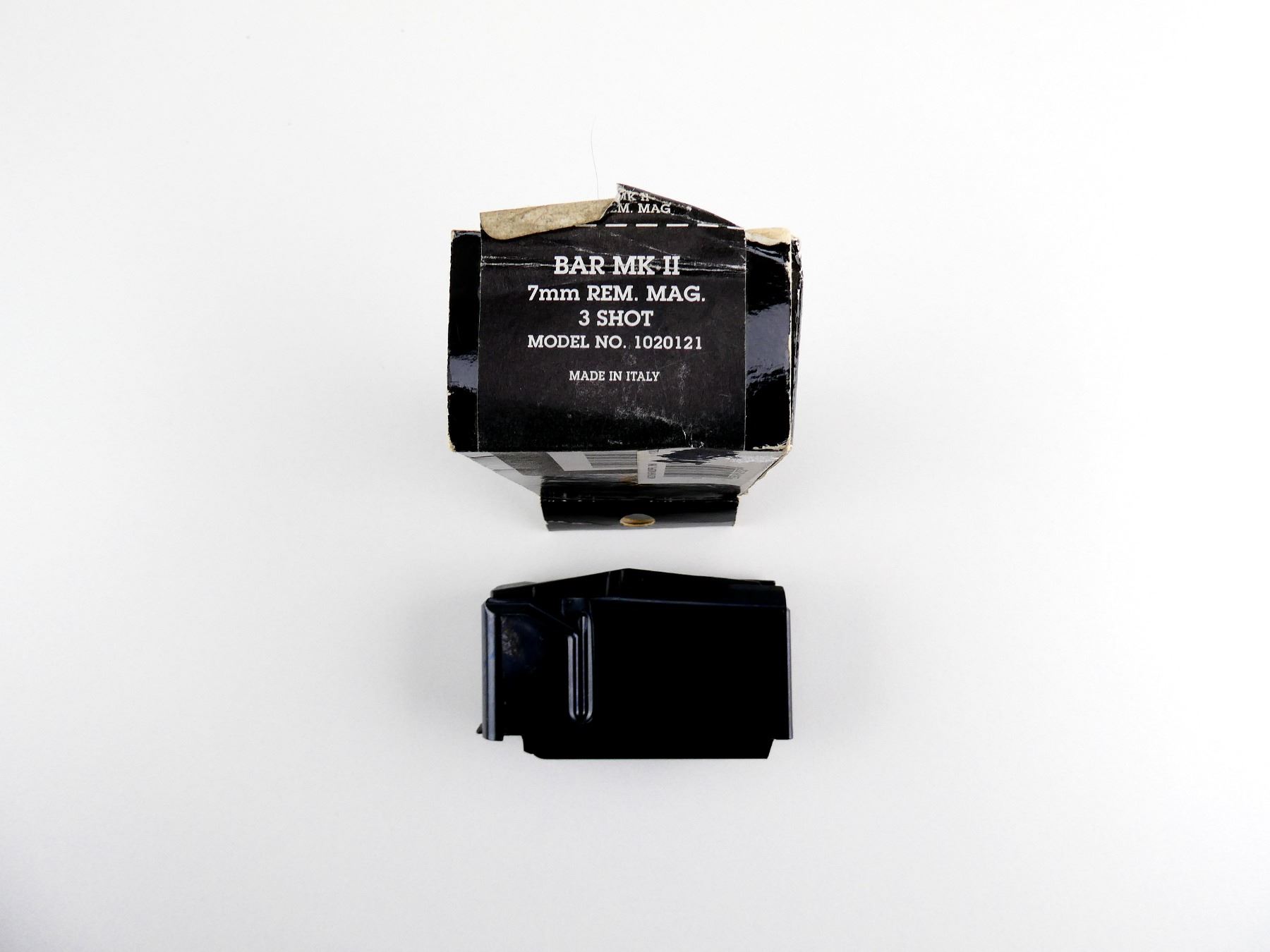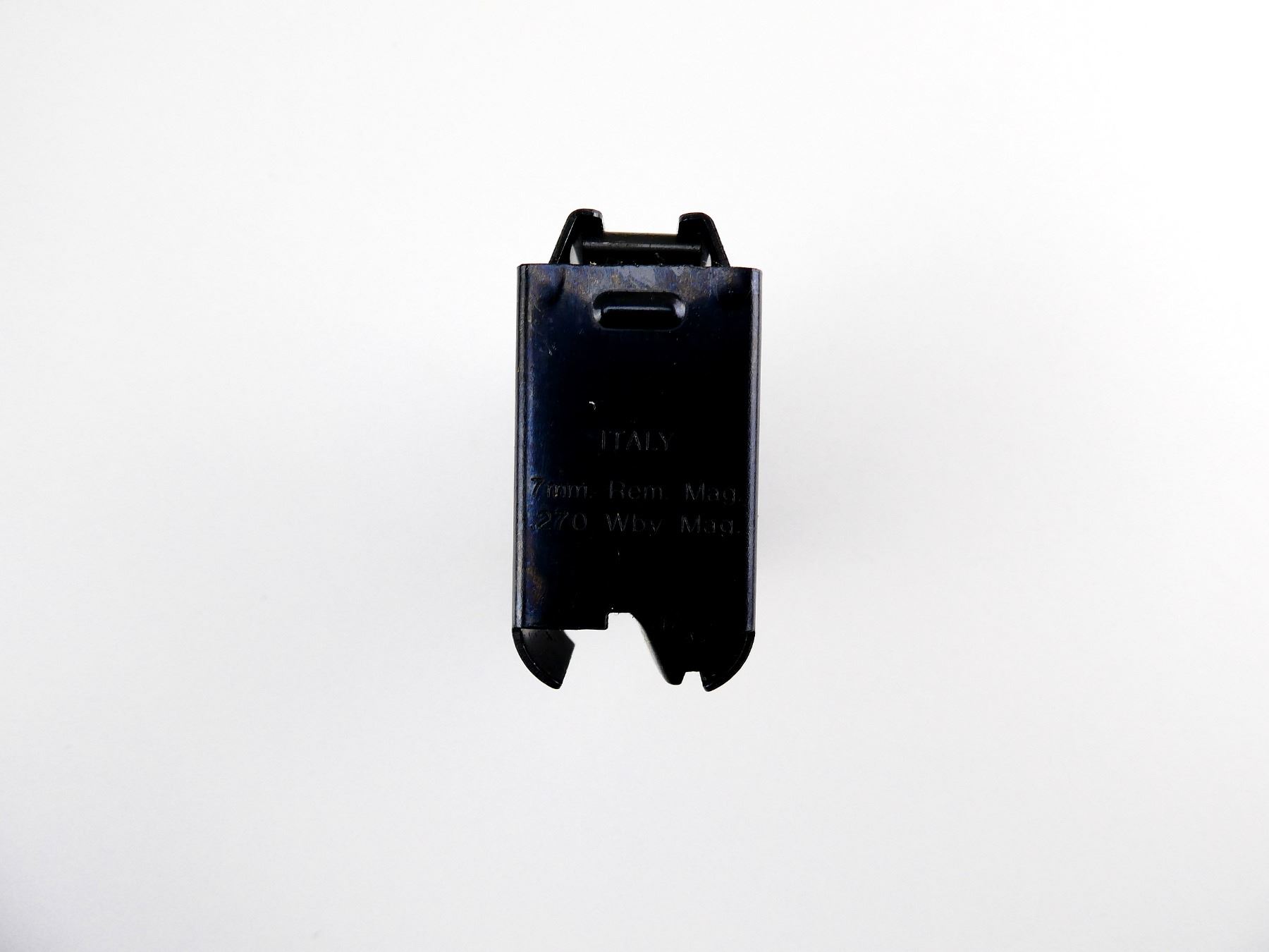 (1) 7MM REM MAG MAGAZINE, 3 RNDS, BLUED STEEL CONSTRUCTION, MARKED: "ITALY, 7MM REM MAG, .270 WBY MAG", APPEARS NOS IN ORIGINAL PACKAGING. SEE PHOTOS. PAL REQUIRED.