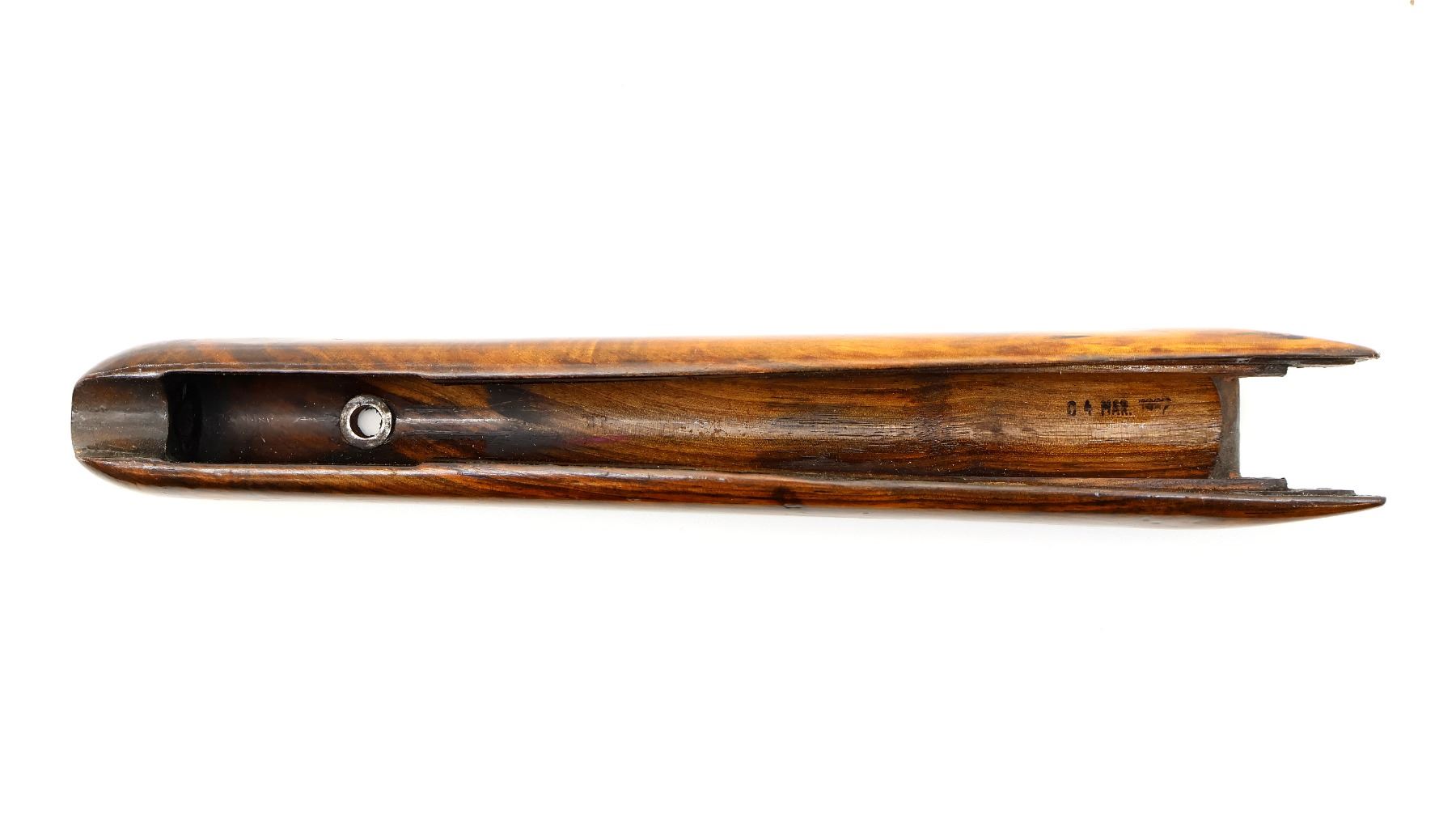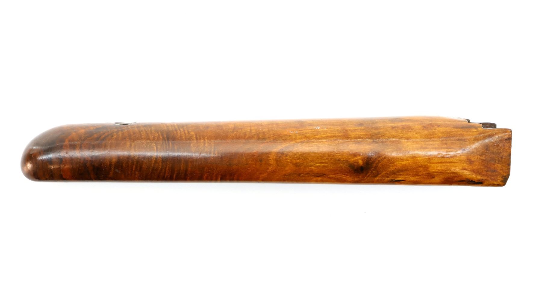 (1) WOODEN REFINISHED FOREND, SMOOTH, UNMARKED, MAY HAVE SMALL CRACKS & CHIPS, OVERALL LENGTH APPROX. 12.75". MAY REQUIRE FITTING. SEE PHOTOS.