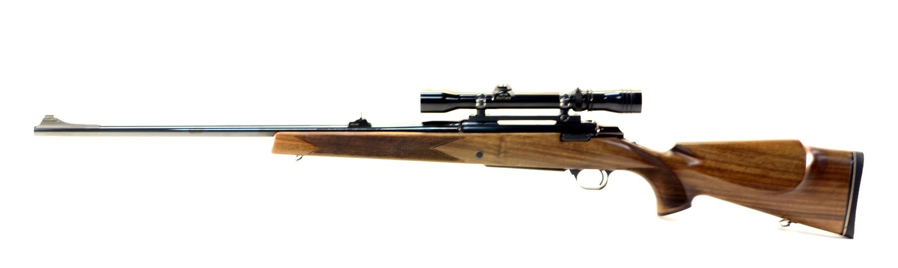 529R-0005 BROWNING BBR .30-06 BOLT ACTION. 25" BARREL, FLUTED BOLT. WILLIAMS SIGHTS, REDFIELD 4 PLEX 2X-7X SCOPE. WALNUT STOCK. MADE IN BELGIUM.