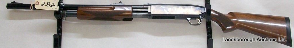 NON-RESTRICTED, PUMP ACTION, 10GA X 3 1/2", 30" BARREL WITH REMOVABLE CHOKES (M, TKY, IC,F) AND 24" SMOOTH BORE SLUG BARREL, SN 02898PN192. WOOD AND BLUE HAS MARKS AND SCRATCHES, BORES VERY GOOD.