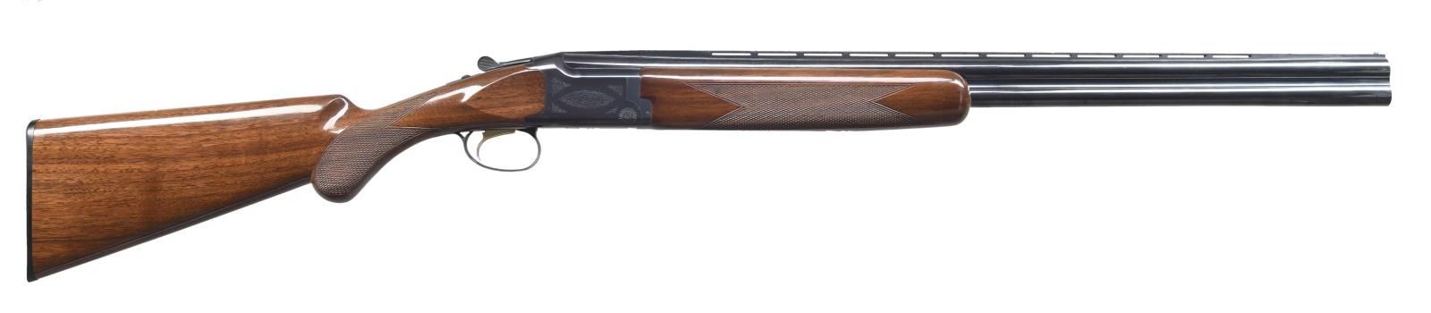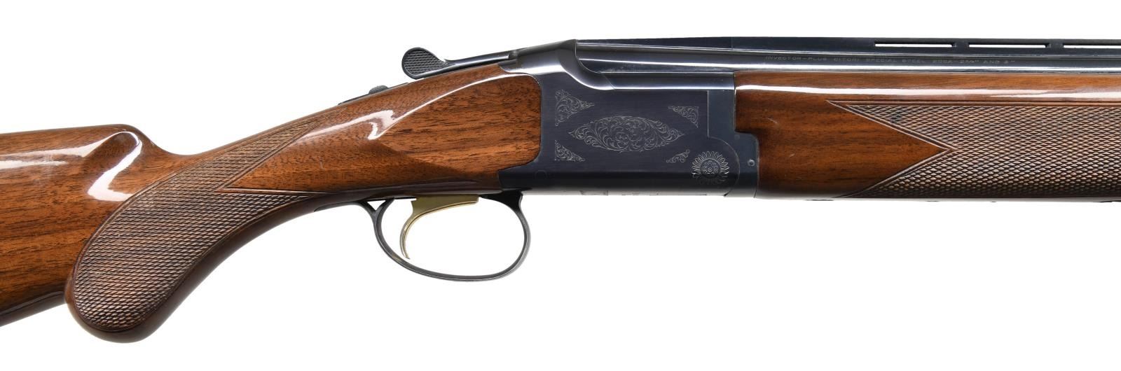 Cal. 20 ga. 2 3/4" & 3". S# 32272NW763. Bbls. 26" vent rib w/ steel bead. Invector plus interchangeable chokes. IC & mod tubes are included. Blued boxlock action w/ scroll ornamentation. Gold-plated SST. Selective ejectors. Lightning forearm & round knob walnut stock w/ gloss finish, cut checkering, & original buttplate. CONDITION: over 97% blue, showing small marks. Original wood finish shows small scratches & marks. Bright, near-excellent bores. (23-5978/DS). MODERN. $700-1,100.