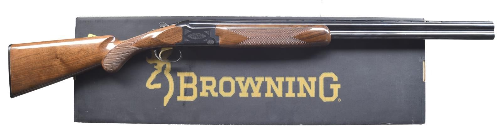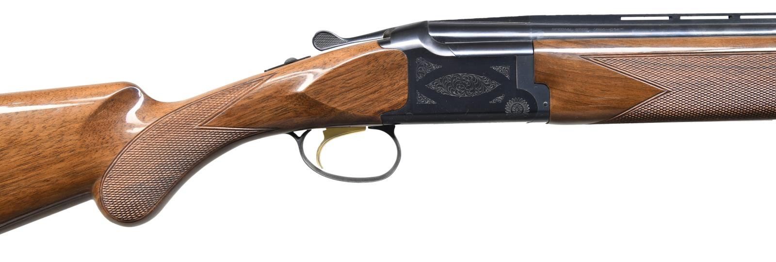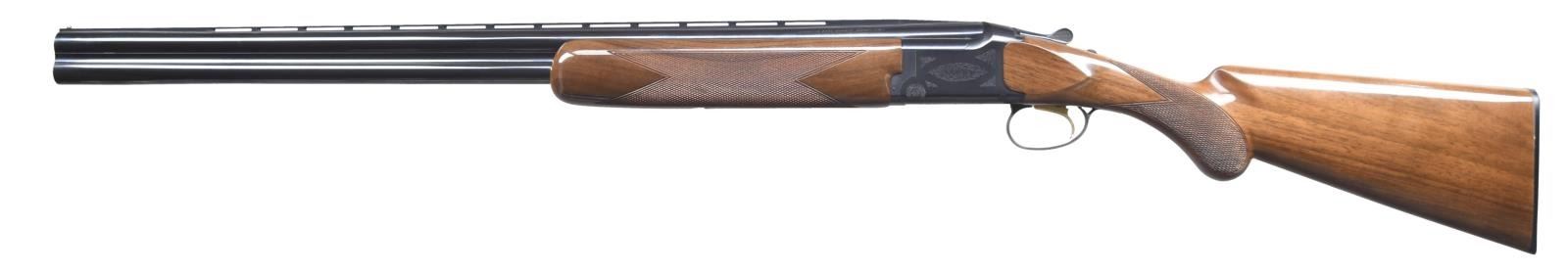 Cal. 16 ga. 2 3/4". S# 23329MY131. Bbls. 28" vent rib w/ Invector chokes. F, M, and IC tubes included. Blued boxlock action w/ scroll ornamentation. Gold-plated SST. Selective ejectors. Lightning forearm & round knob walnut stock w/ gloss finish, cut checkering, & original buttplate. UNATTACHED ACCESSORIES: original box containing chokes, choke wrench, & owner's manual. CONDITION: near new w/ box. (23-5976/DS). MODERN. $1,200-1,600.
