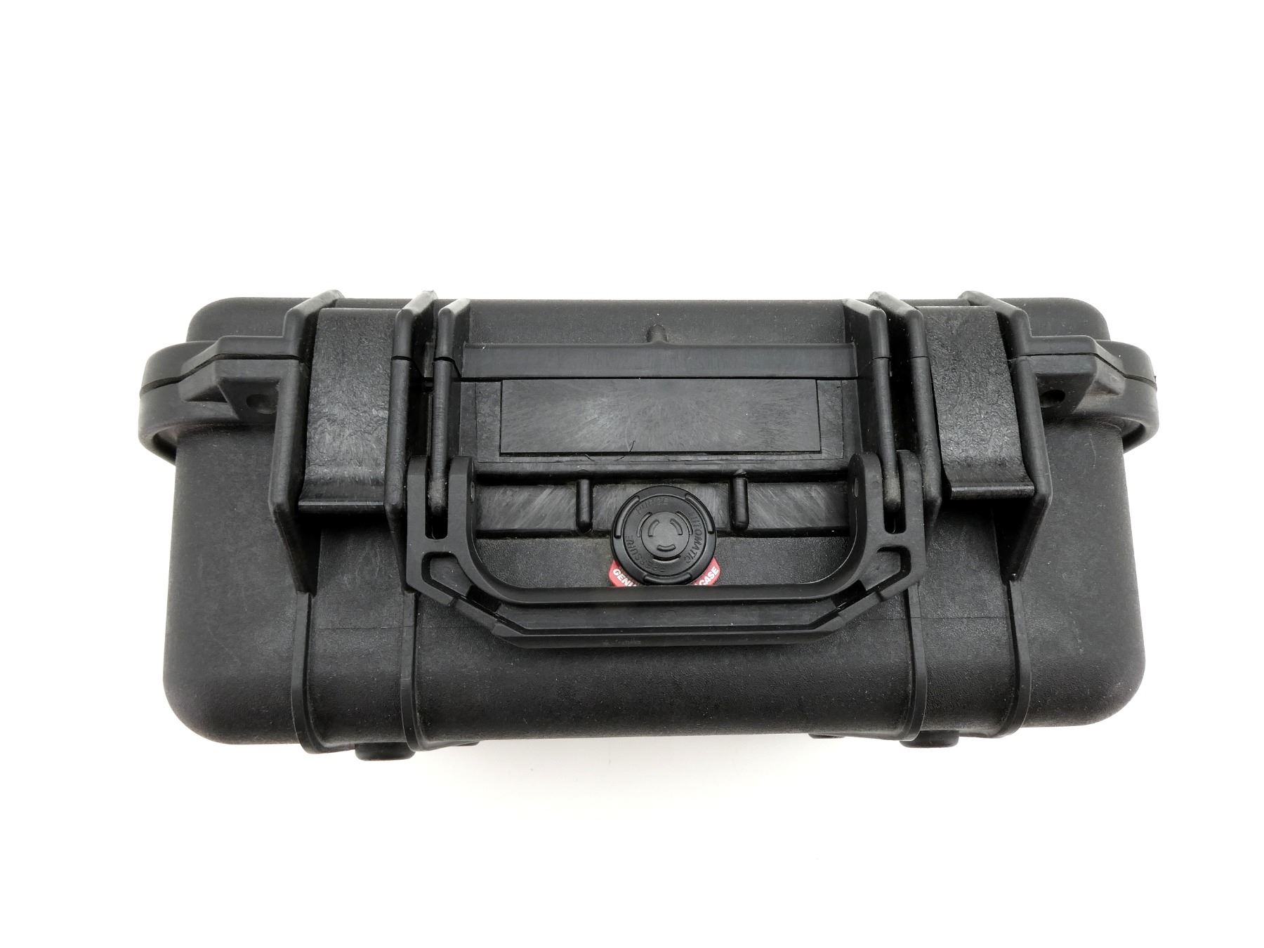 LOT INCLUDES; (1) BLACK HARD PADDED HAND GUN CASE, CARRY HANDLE, (2) LATCHES, FLANGE RINGS FOR PADLOCKS, O-RING, PURGE VALVE, APPROX. OAL 12"X9"X6", APPEARS NOS, SEE PHOTOS.