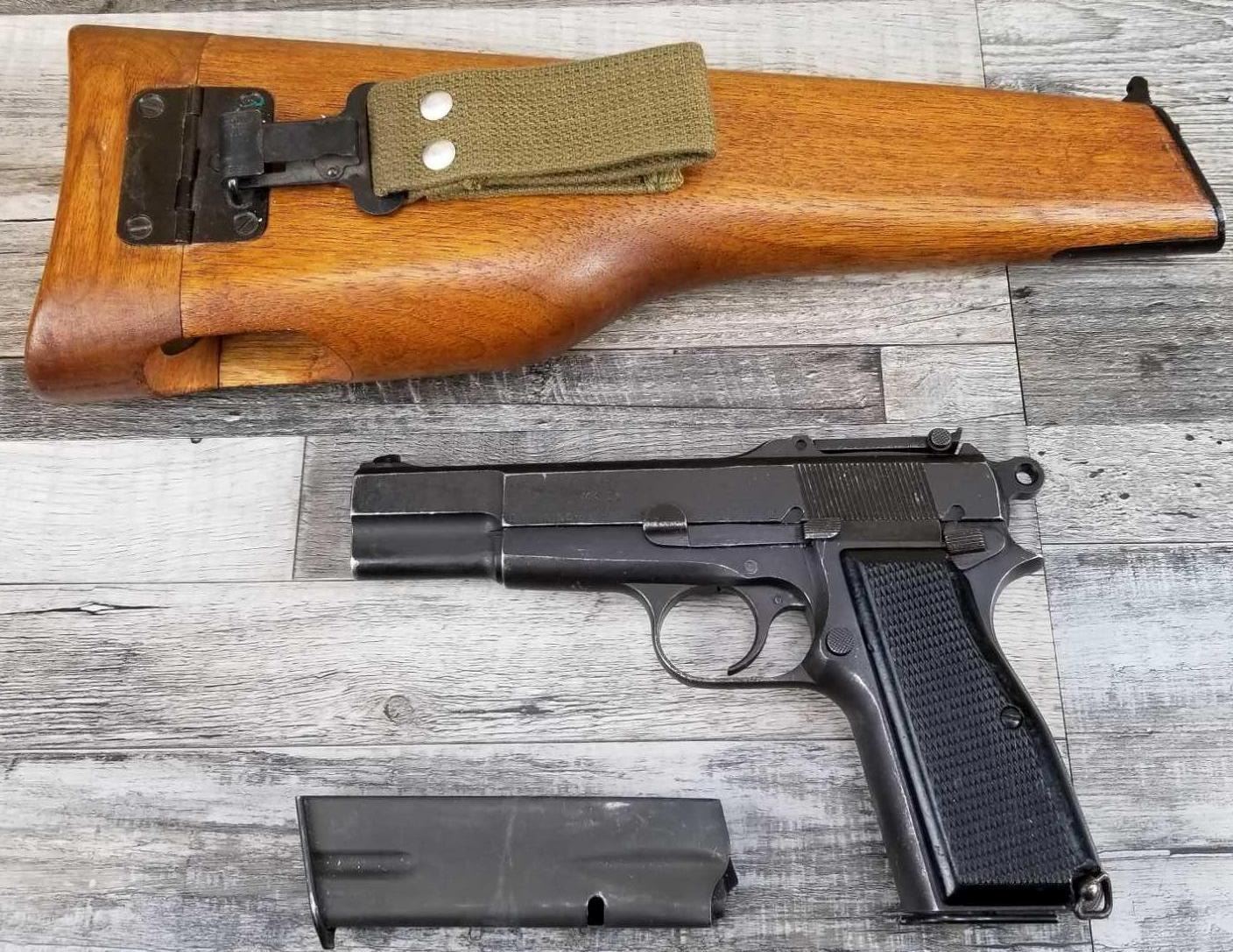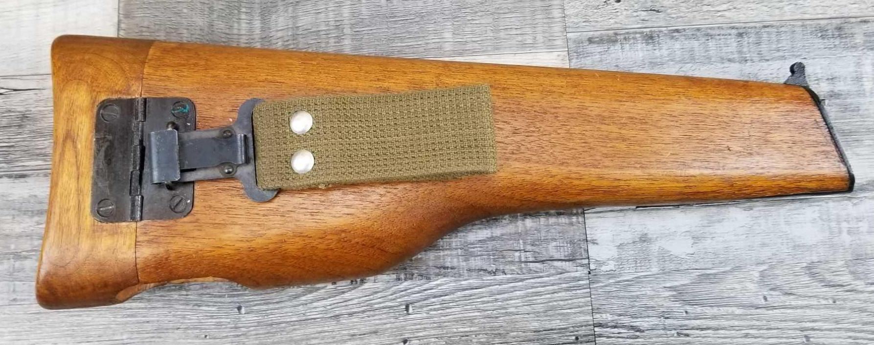 TANGENT REAR SIGHT. COMES WITH STOCK/HOLSTER. WAR TIME FINISH. MATCHING NUMBERED. BORE IS VERY GOOD. GOOD WORKING ORDER. COMES WITH TWO HI-CAP MAGS, IN CA NO MAG.