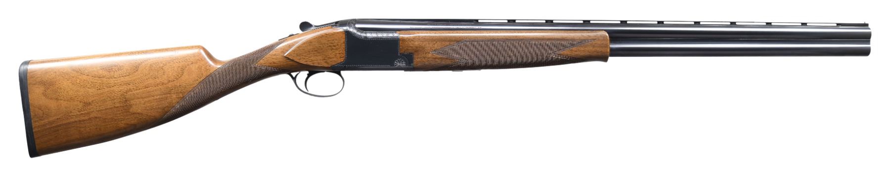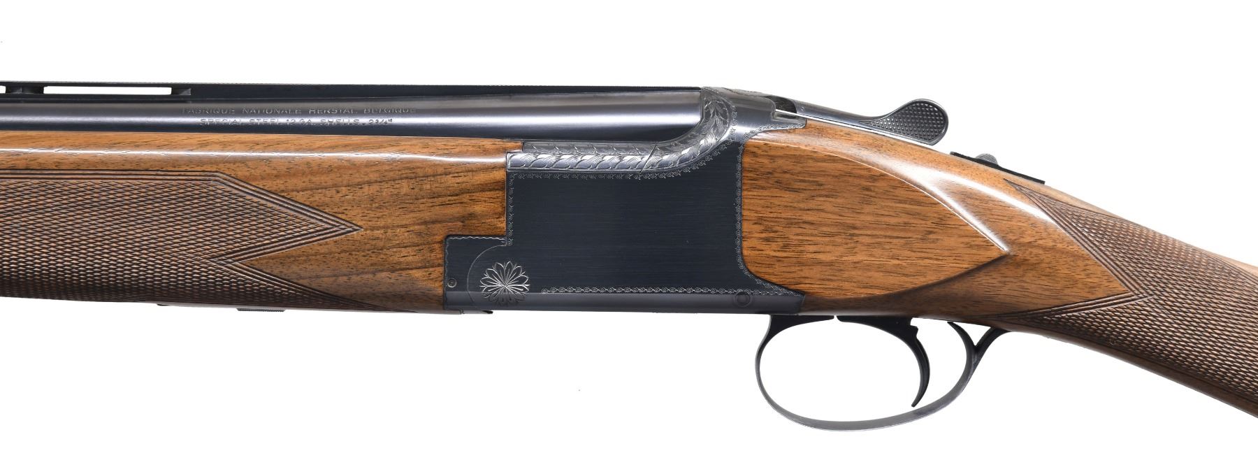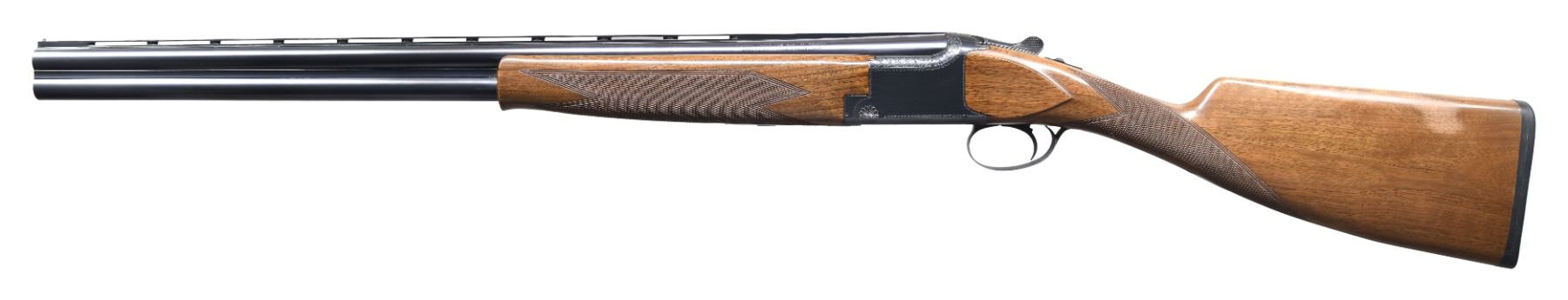 Cal. 12 ga. 2 3/4". S# 61207S77. Bbls. 26 1/2" vent rib w/ steel bead. Fixed Full & Full chokes. Blued receiver has borderline engraving. Blued SST. Ejectors. Schnable tipped forearm & swan's neck walnut stock w/ hand checkering. LOP: 14 5/8" over an aftermarket thin black Old English pad (stock has not been shortened). WEIGHT: 6 lbs, 12.4 oz. Mfg. 1977 in Belgium. UNATTACHED ACCESSORIES: non-matching foam-lined Browning box. CONDITION: over 98% original blue showing small marks at bottom of bbl. lugs. Very good original stock finish & checkering having small handling marks & a spot of finish loss at the left side of comb. Action is tight w/ top lever sitting right of center. Bright near excellent bores. (25-903/DS). MODERN. $2,200-3,000.