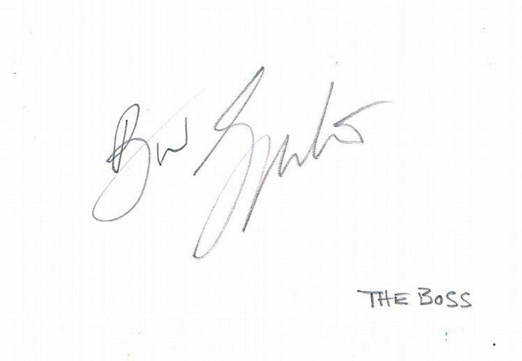 A white card signed by Bruce Springsteen.