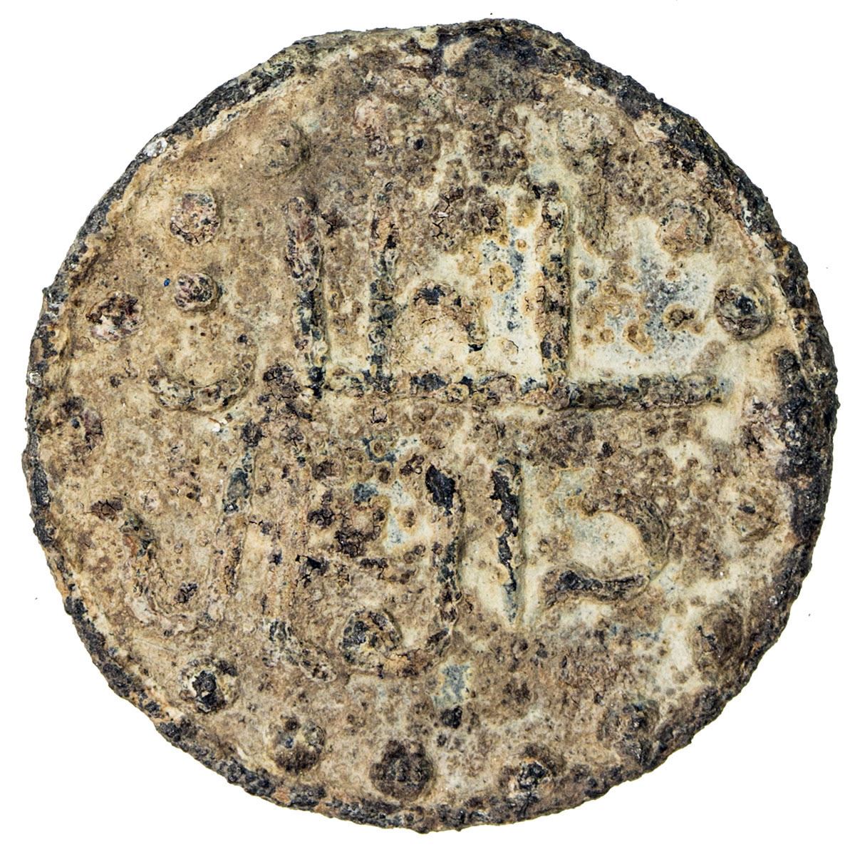 BRUNEI: Anonymous, 18th-19th century, small tin pitis (1.38g), SS-22, text only, al-sultan / al-'adil, wth the "d" right of the word al-'adil // malik / al-zahir, circle of dots around both sides, porous surfaces, F-VF, RR, ex Howard Simmons Collection.