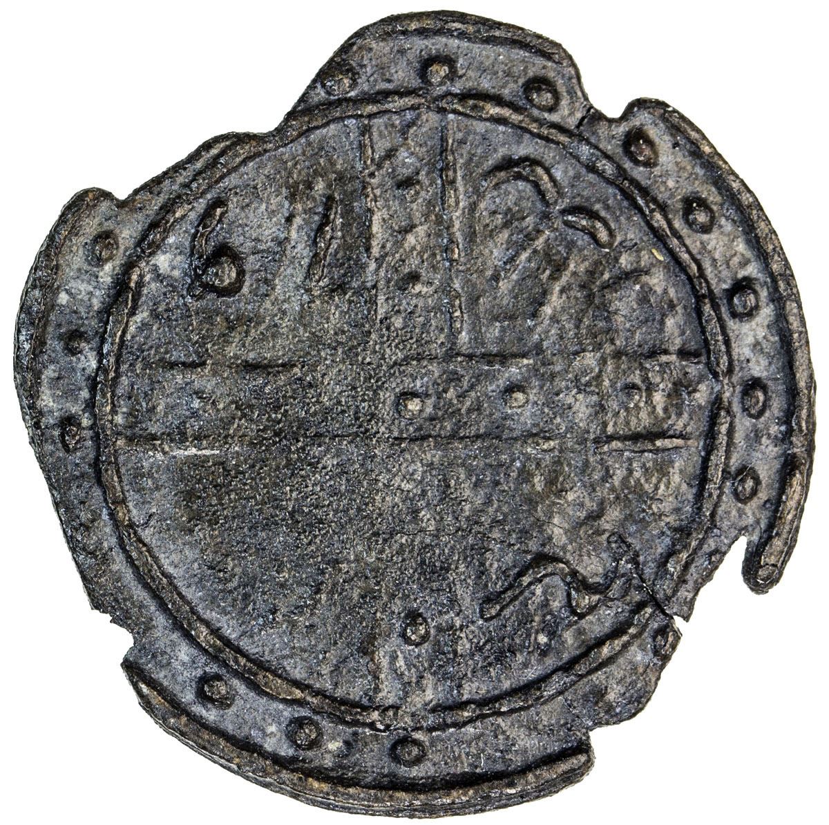 BRUNEI: Anonymous, 18th-19th century, tin pitis (2.2g), SS-7A, tiger facing left // Arabic al-muzâhir … fi bilâd al-biruni ("the master of … in the land of Brunei") arranged around a cross, weakly cast, as the casting molds were loosely applied, EF, RR, ex Howard Simmons Collection. The text was read as "sultan al-'adil malik al-zahir," which is obviously incorrect on this fascinating and very rare piece. The uncertain Arabic word resembles "rûm", but that seems unlikely.