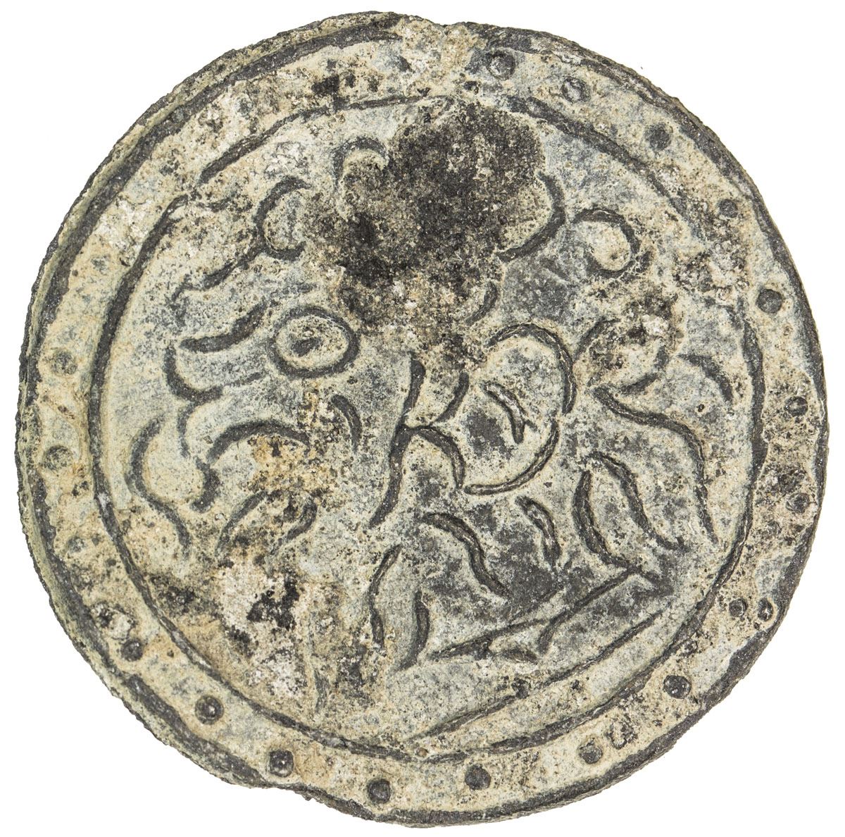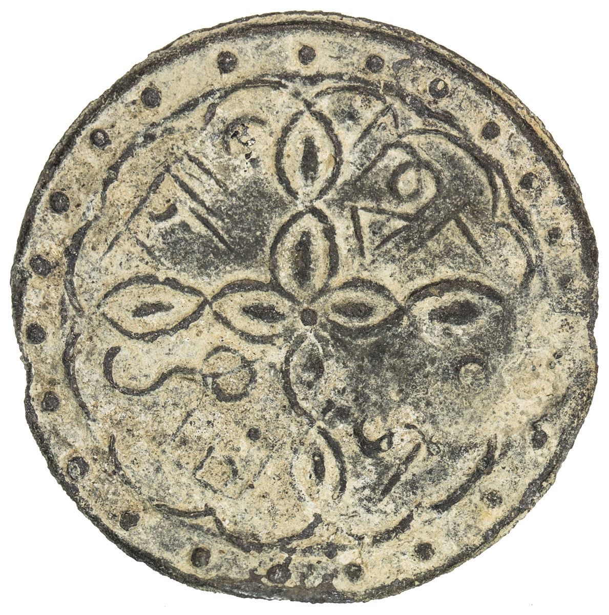 BRUNEI: Anonymous, 18th-19th century, tin pitis (4.23g), SS-13G, camel facing left, floral design above // Arabic honorific title al-sultan al-'adil malik al-zahir within ornate dodekafoil with central flower, 1 casting defect on reverse, VF-EF, RR, ex Howard Simmons Collection.