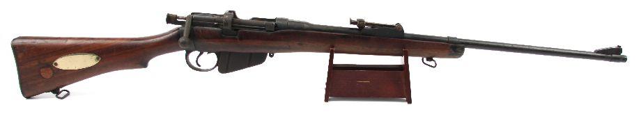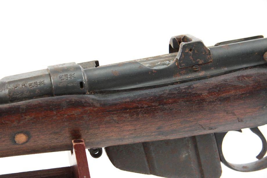 BSA Co. Enfield MK III with sporter stock. Dated 1918, with British proof marks. Bore is good, with some minor rust and dirt. Significant surface rust on exterior surfaces. Stock is in good condition, with handling wear but no cracks or major repairs. Overall fair. SN: 6120 Caliber: .303 Serial #: 6120