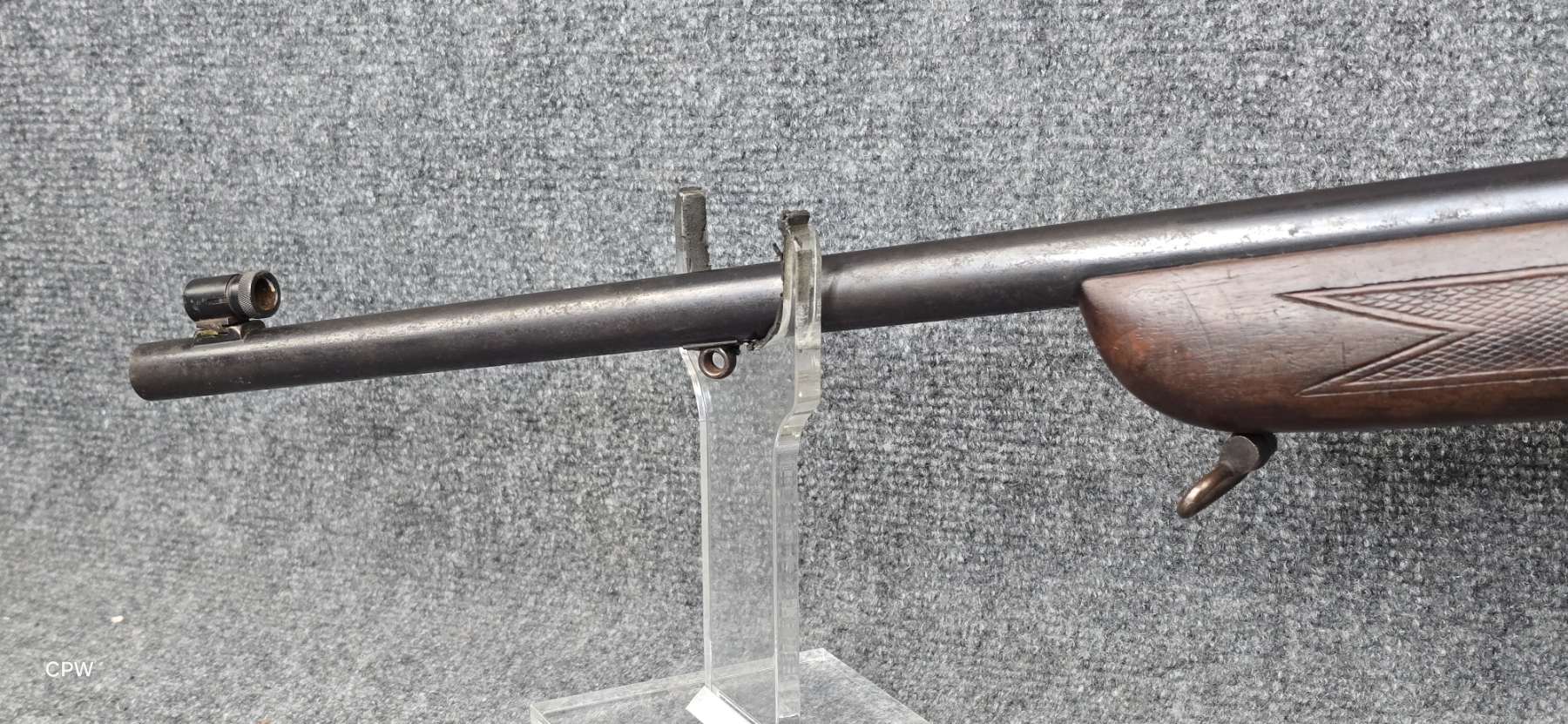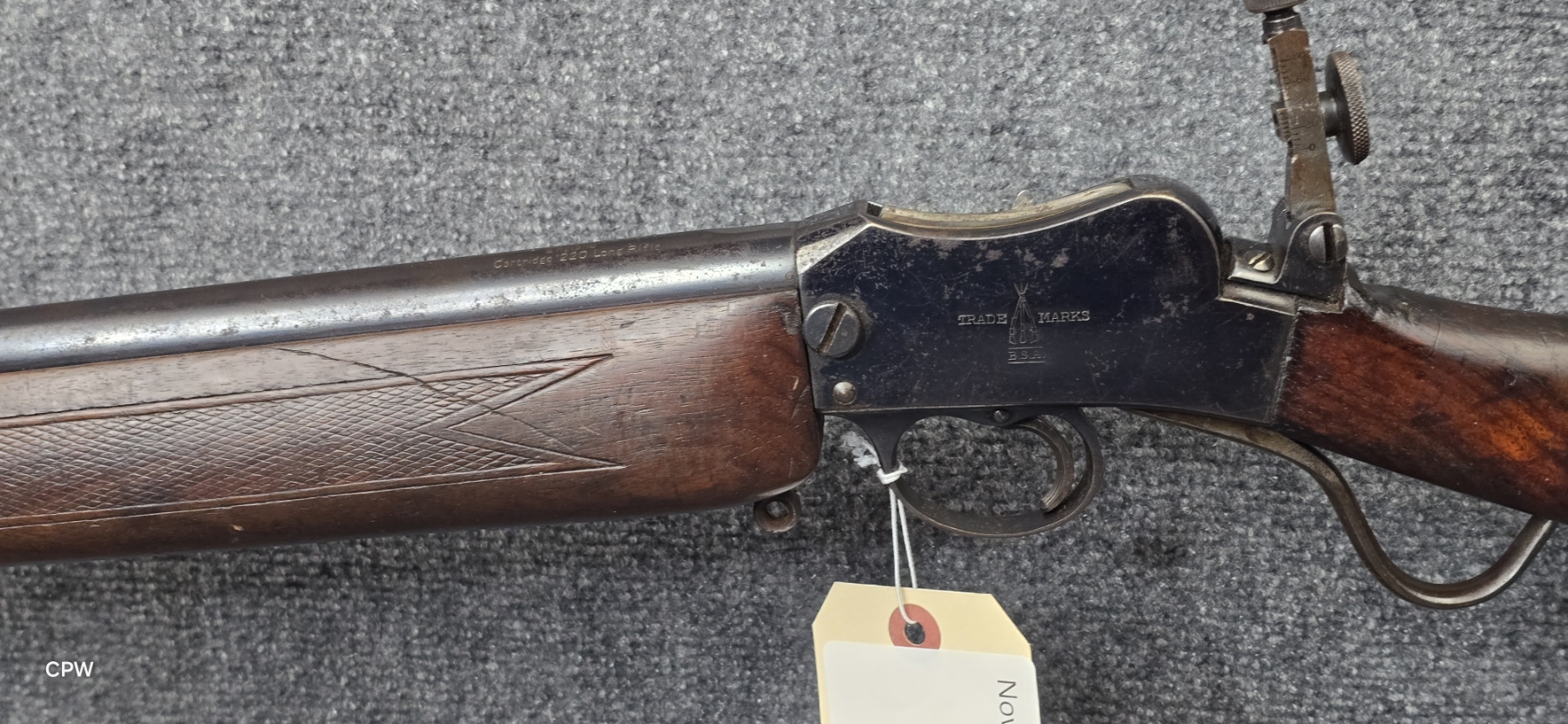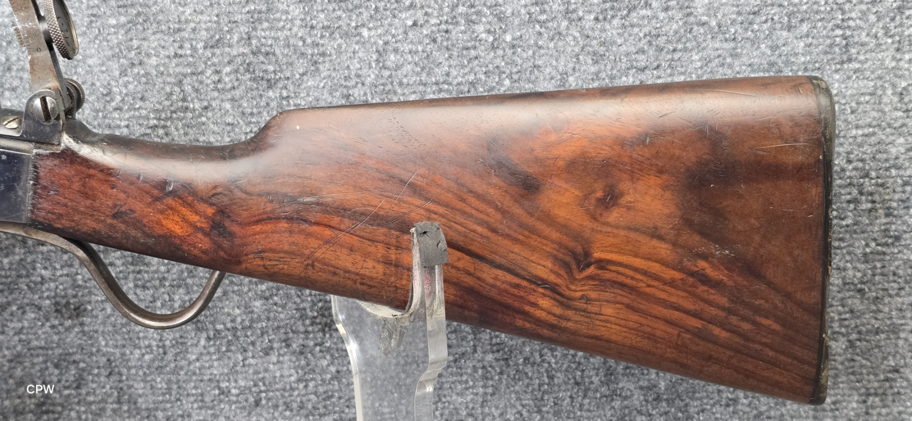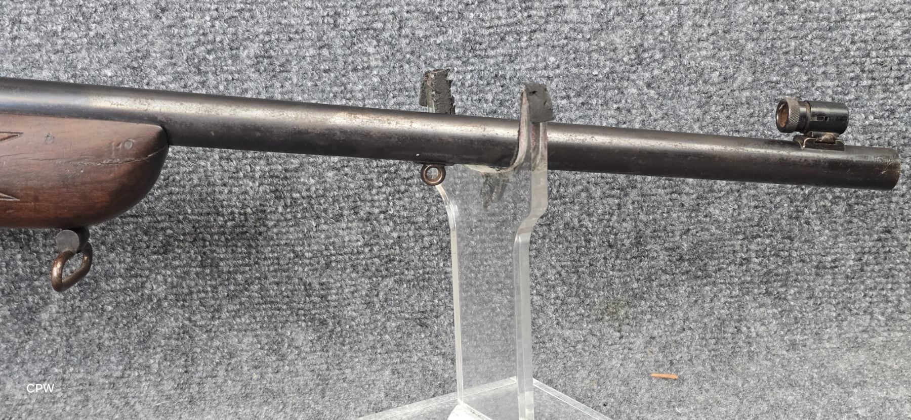 Collectors Item. Lots of tarnish on receiver, shallow pitting on barrel, stock in very good condition with no cracks. BSA peep sight (value $250) and is complete with all components.