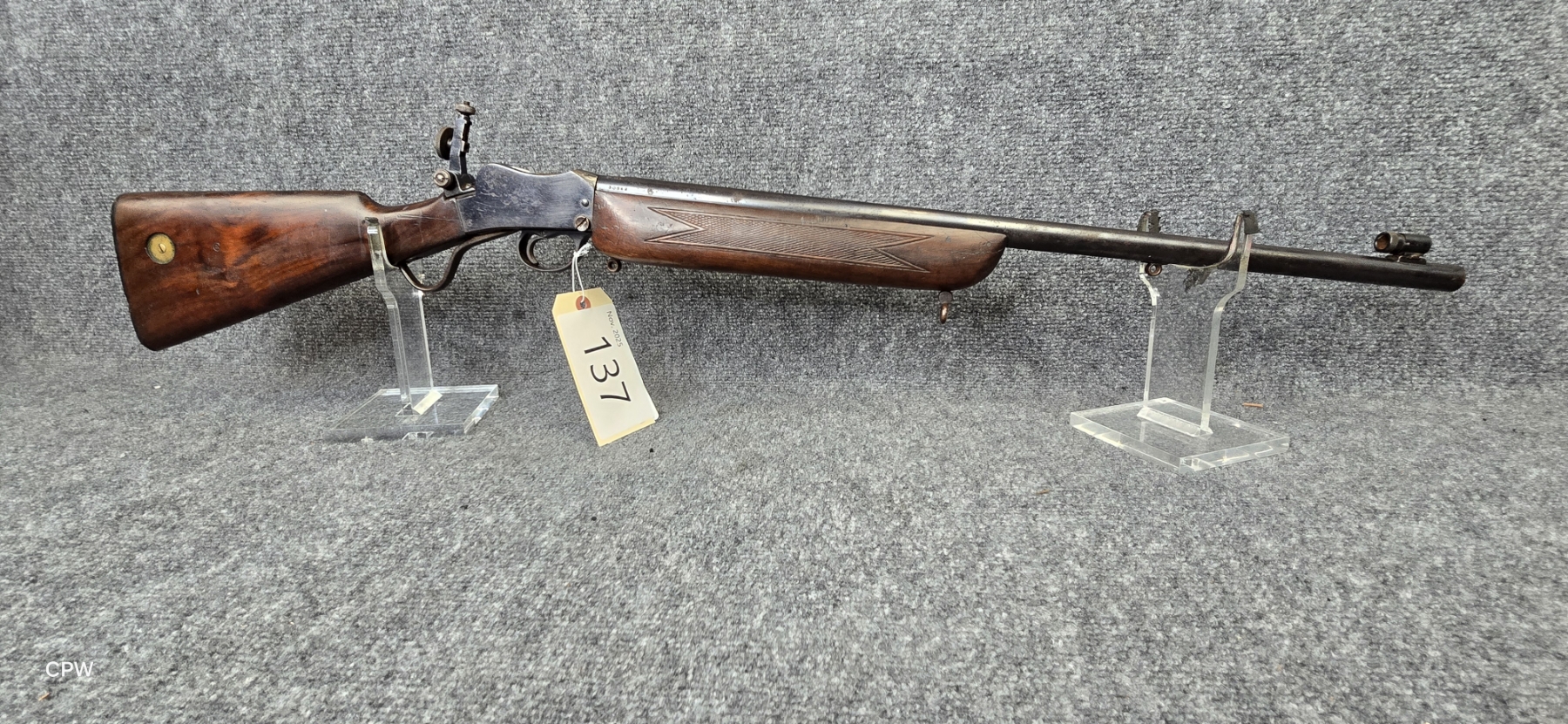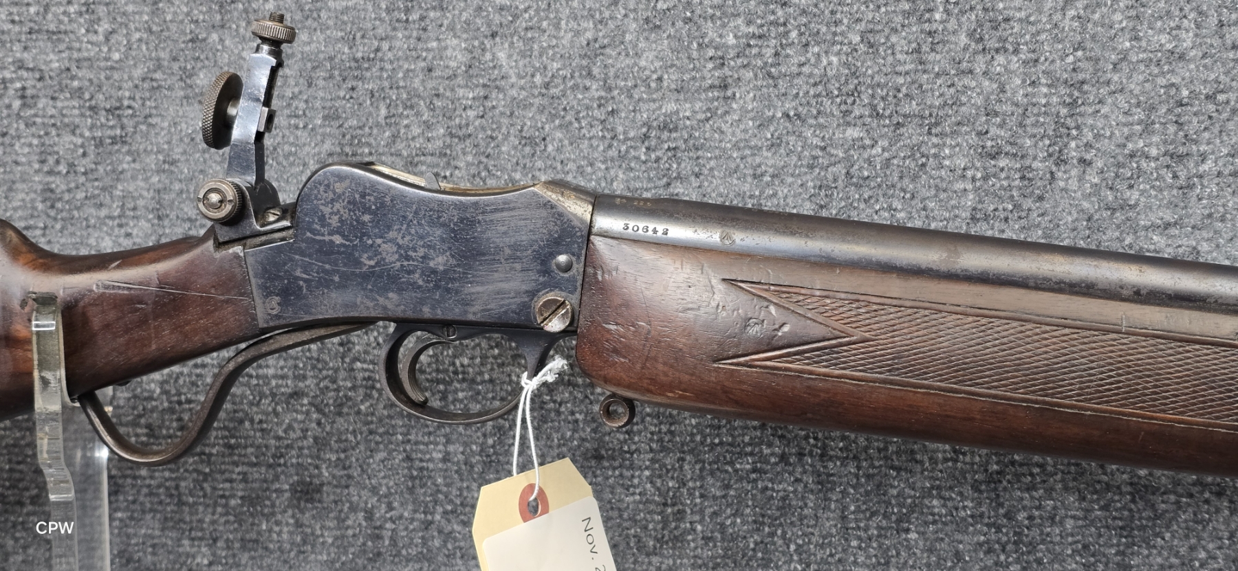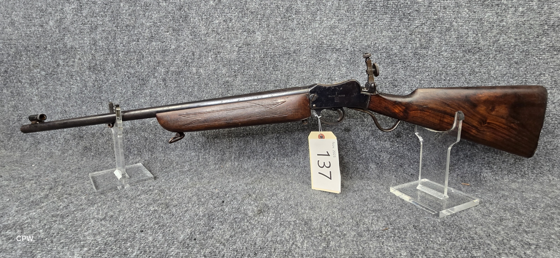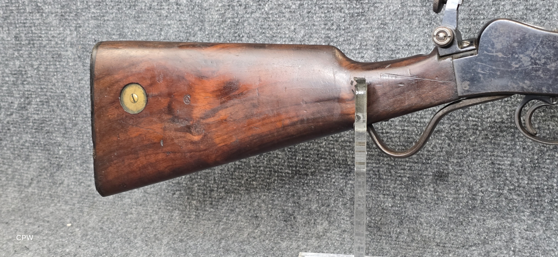 Collectors Item. Lots of tarnish on receiver, shallow pitting on barrel, stock in very good condition with no cracks. BSA peep sight (value $250) and is complete with all components.
