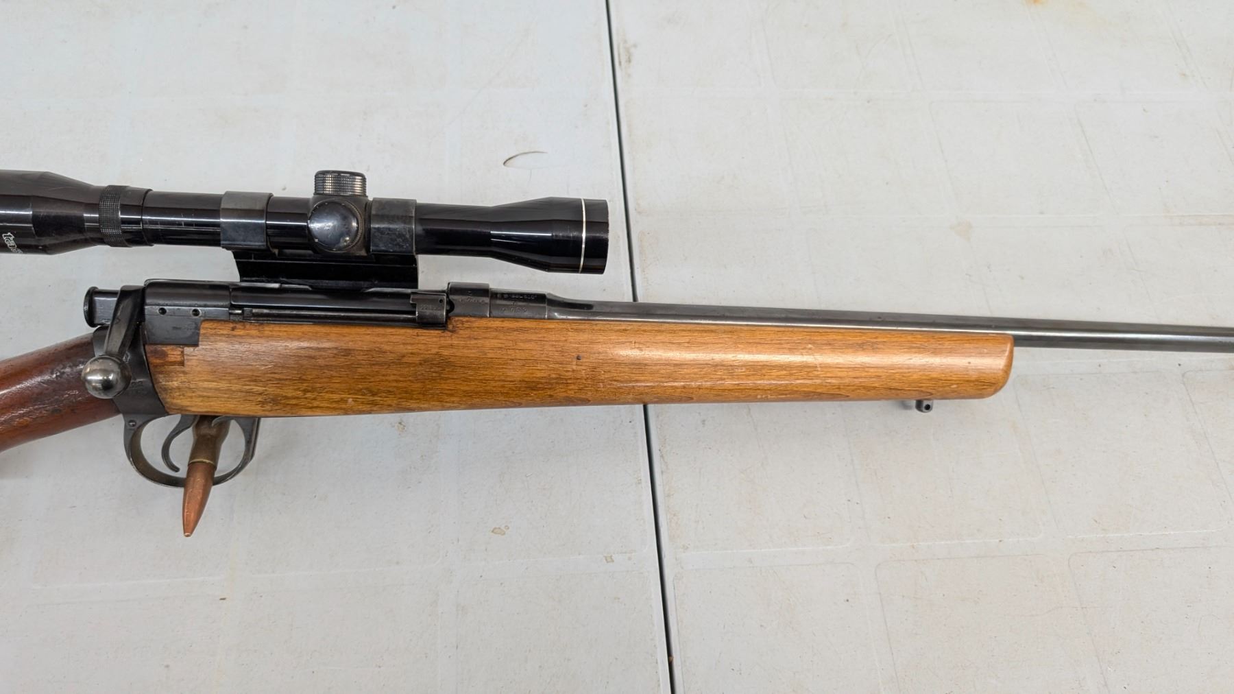 Bolt action, Retains approx 85% of its original finish, bore is shiny with sharp rifling, action fuctions well, stocks are in good to very good condition. Comes with Tasco 4x32 rifle scope.