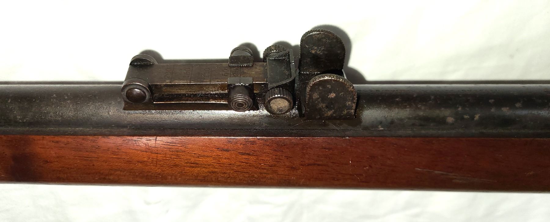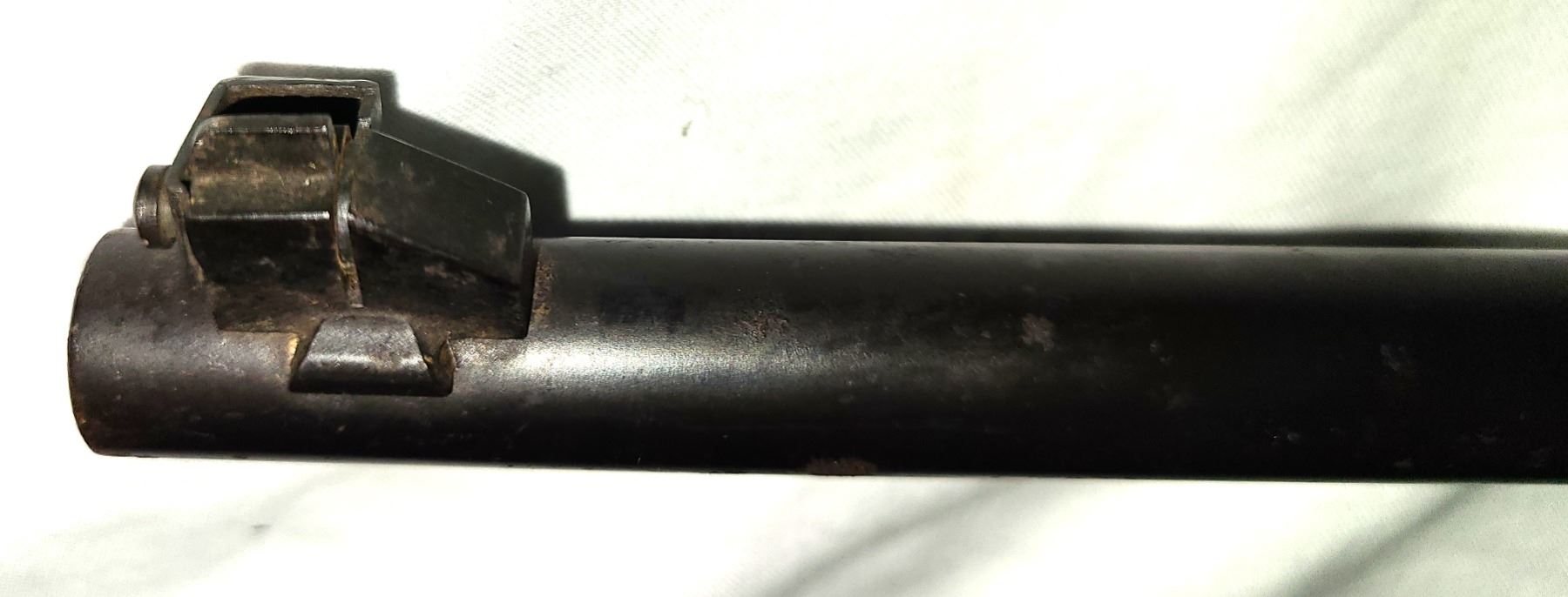 Fornt sight has hood and rear sights are also original.