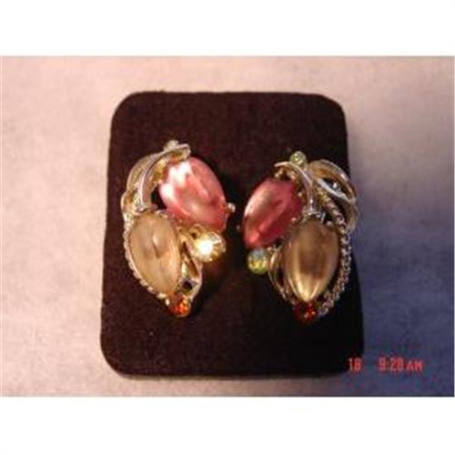 <tr><td>Title:BSK Fruit Salad Lucite Rhinestone Earrings</td></tr>