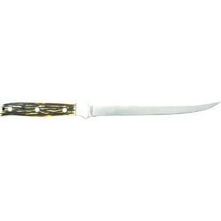 Uncle Henry Large Fillet Knife Full Tang Fixed Blade, 7Cr17 High Carbon Stainless Steel Fillet Blade, Staglon Handle Slabs with Nickel Silver Bolsters, Brass Pins, Lanyard Hole, and Brown Leather Belt Sheath