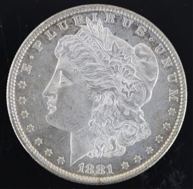 BU 1881-O Morgan Silver Dollar. 90% silver coin has beautiful details and original mint luster