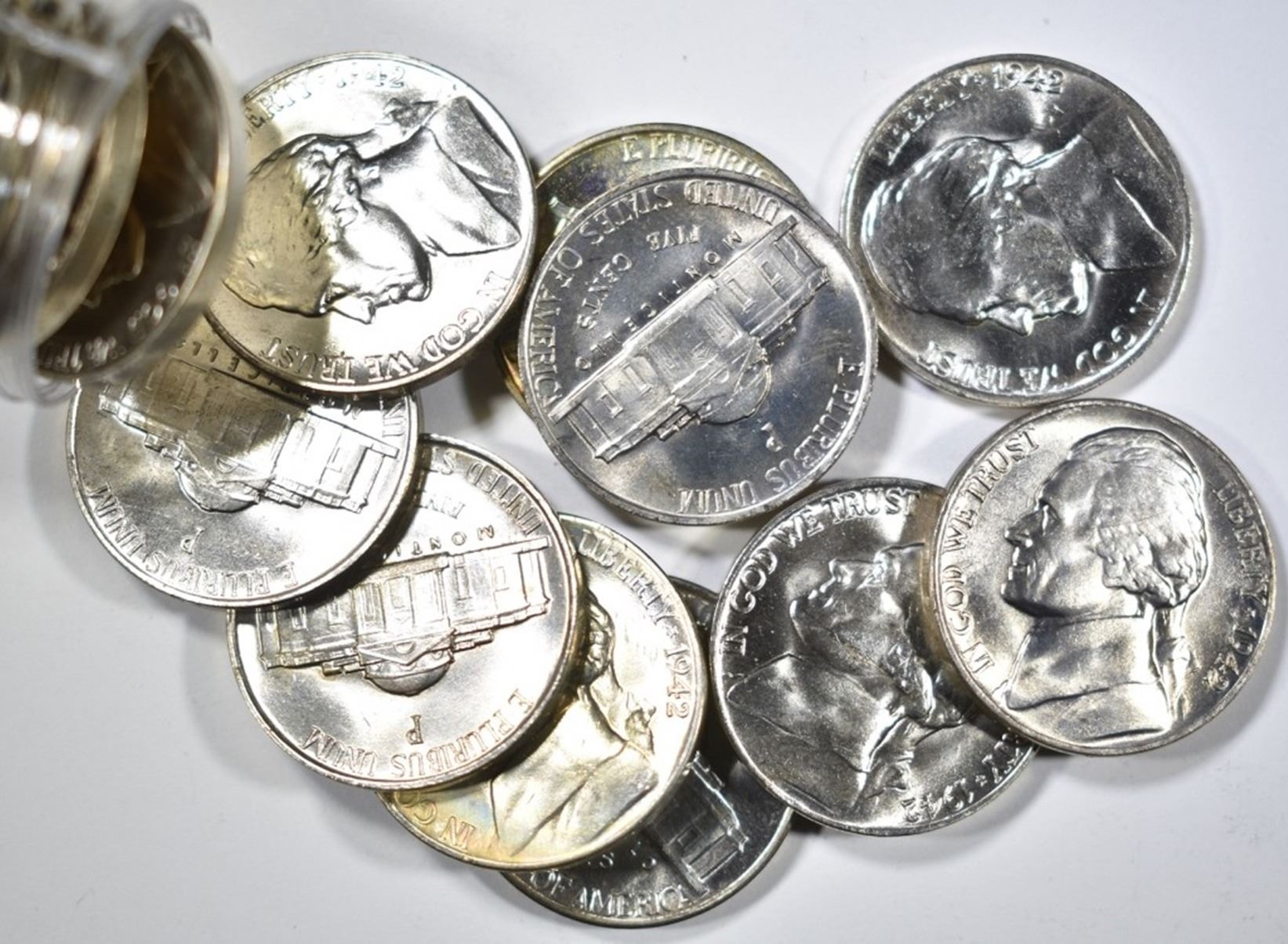 BU ROLL OF 1942-P SILVER JEFFERSON WAR NICKELS,
